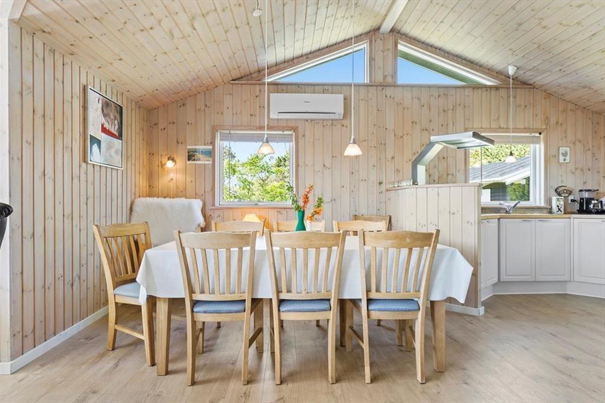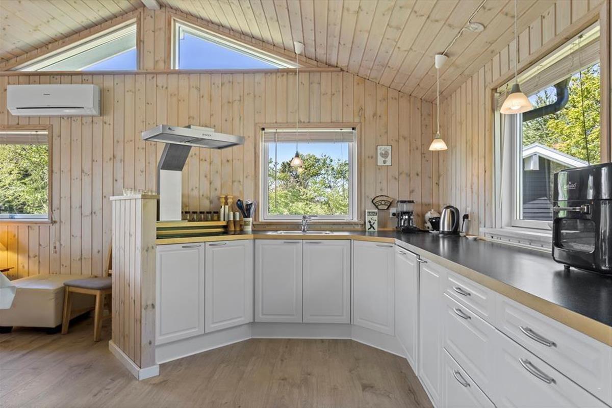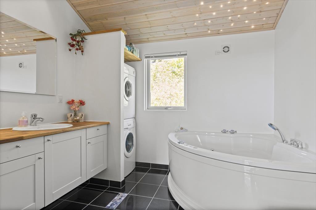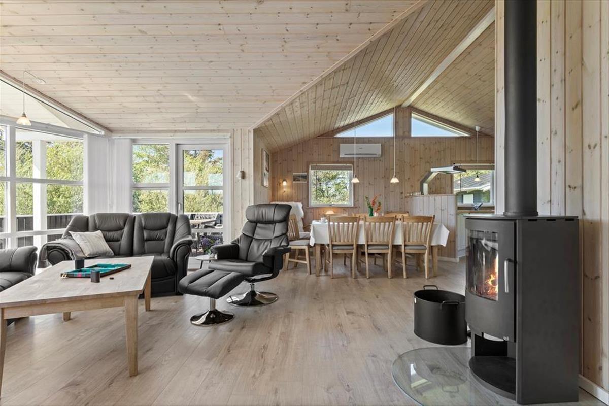 Das reizvolle, gepflegte Ferienhaus aus dem Jahr 2005 begrüßt Sie mit einer 86 m² großen Wohnfläche. Die helle Möblierung fügt sich wunderbar in die Räumlichkeiten ein. Prägend sind die hellen Holzvertäfelungen an den Wänden und Decken, die kurz gesagt maßgeblich zur richtig schönen und gemütlichen Wohnatmosphäre beitragen. In den drei Schlafräumen können Sie sich so richtig schön ausschlafen. Im Laufe des Tages lockt sicherlich hin und wieder ein erholsames, entspannendes Bad im schönen Whirlpool, der Sie im tollen Badezimmer erwartet. Das stimmungsvolle i-Tüpfelchen des Badezimmers sind die kleinen, hübschen Lichtspots über dem Whirlpool. Erwähnenswert ist selbstverständlich auch der schöne, atmosphärisch ansprechende Wohnraum, der offen mit der guten Küche verbunden ist und mit einem behaglich wärmenden Kaminofen und großen Fenstern, die einen tollen Tageslichteinfall gewähren, zu überzeugen weiß.