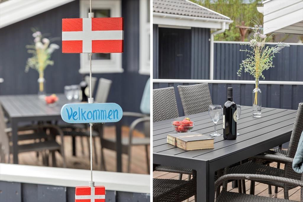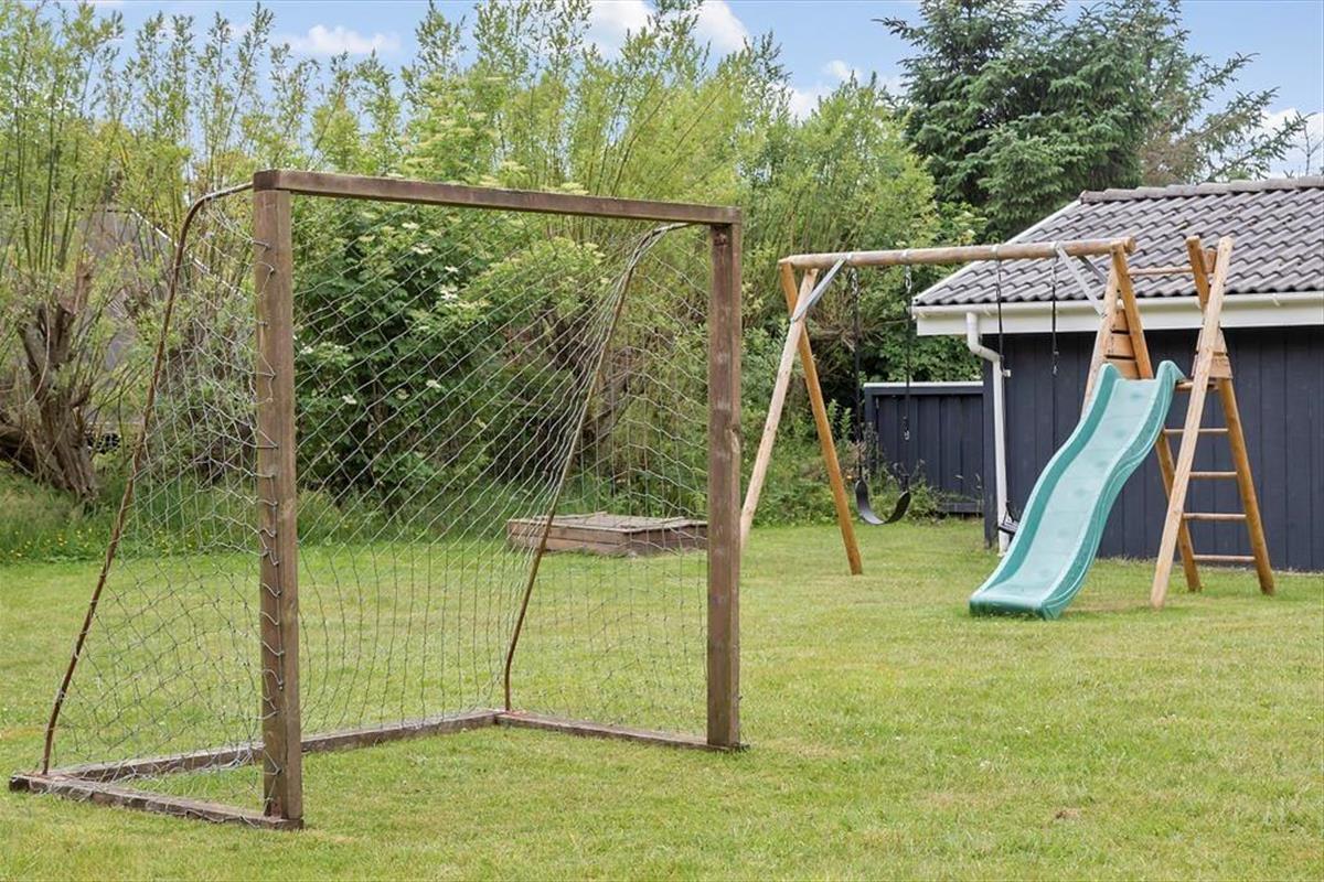 Im Freien lässt es sich auf dem 1450 m² großen Grundstück, das von Sträuchern und Bepflanzung zu den Nachbarn hin umgeben ist, sehr gut leben. Die Kiesauffahrt bietet Platz für mehrere Autos, und auf der Wiese könnt ihr euch so richtig austoben. Es gibt zwei Fußballtore, sodass die ganze Familie ihr Können mit dem Ball unter Beweis stellen kann. Für die Kinder gibt es einen Spielturm und eine Sandkiste. Wenn ihr lieber einfach entspannen möchtet, habt ihr die Wahl zwischen zwei geschlossenen Terrassen, sodass ihr bestimmt einen schönen Platz in der Sonne findet.
