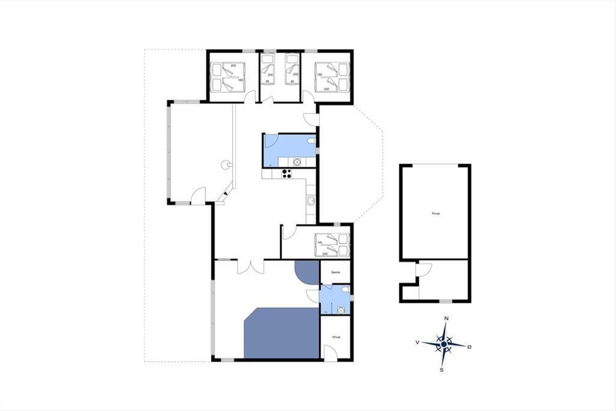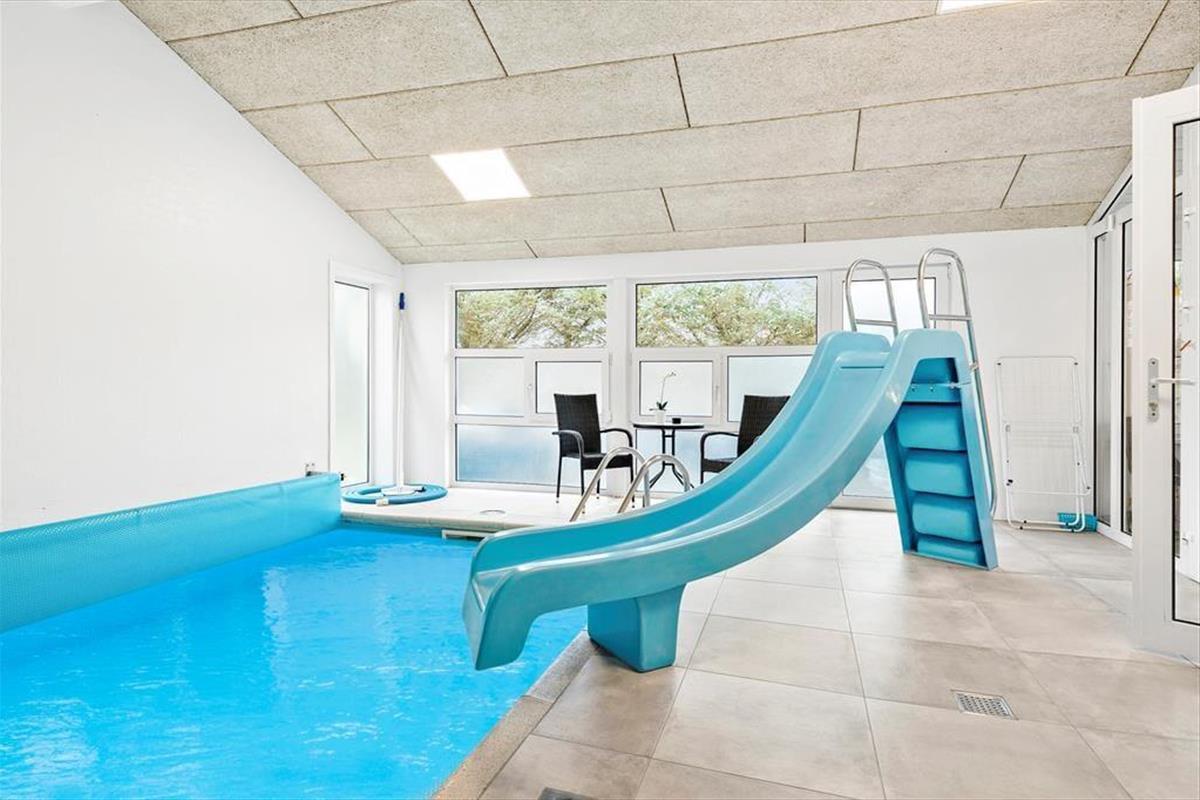 Das 152 m² große Ferienhaus eignet sich besonders gut für zwei Familien mit Kindern, da es vier Schlafzimmer und ein Hochbett mit zusätzlichen Matratzen gibt. Es gibt zwei Badezimmer, von denen eines Teil des Poolbereichs ist. Hier gibt es auch eine Sauna und einen Whirlpool, wenn ihr eine ruhige Pause in der Wärme braucht, während viele Stunden Spaß im Swimmingpool und auf der Rutsche warten. Der Pool verfügt über ein cleveres System, das den Chlorgehalt automatisch auf einem angenehmen niedrigen Niveau hält, sodass das Wasser immer frisch und einladend bleibt. Darüber hinaus wird der Pool mit einer energieeffizienten Wärmepumpe beheizt, sodass ihr das ganze Jahr über eine angenehme Wassertemperatur genießen könnt. Zusätzlich hat der Pool auch ein Gegenstromanlage, damit ihr gegen die Strömung schwimmen könnt, wenn ihr eine zusätzliche Herausforderung wollt oder einfach nur mehr Bewegung im Wasser haben möchtet.