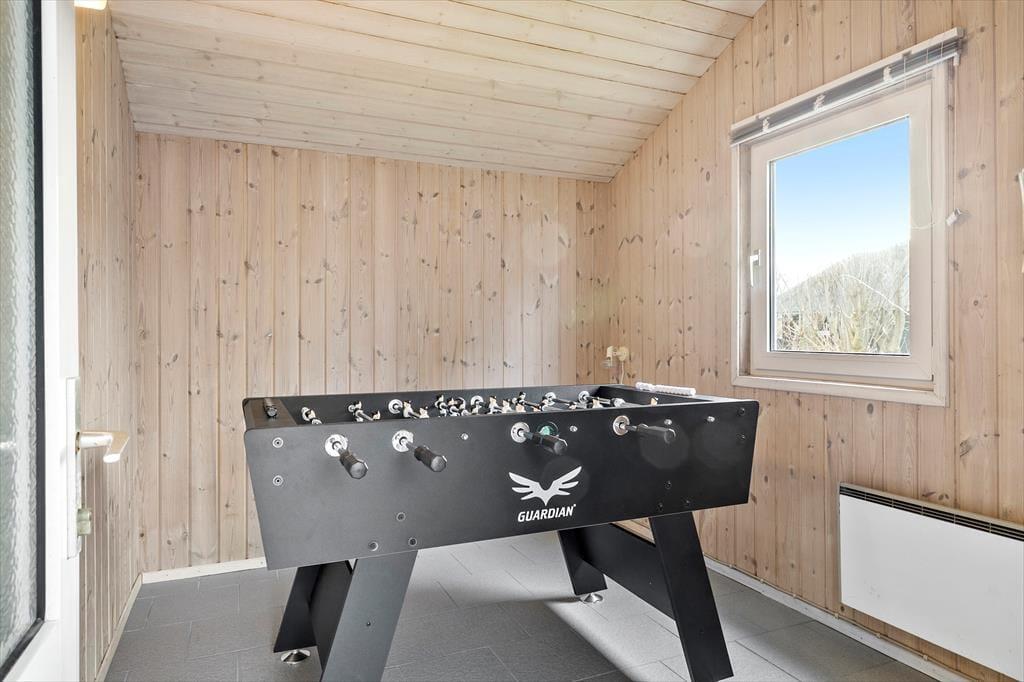 Wenn es Zeit zum Essen ist, habt ihr im schönen Küchenbereich ausgezeichnete Arbeitsbedingungen. Die Küche ist Teil eines hellen und gut eingerichteten Wohnbereichs. Ein großer Esstisch befindet sich auf gleicher Ebene wie die Küche, und wenn ihr ein paar Stufen hinuntergeht, gelangt ihr ins Wohnzimmer, das über einen eingebauten Kamin, einen Flachbildfernseher und bequeme Sitzmöbel verfügt. Als zusätzliche Bereicherung gibt es ein Anbauhäuschen neben der Garage, in dem Kinder jeden Alters eine Partie Tischfußball spielen können.