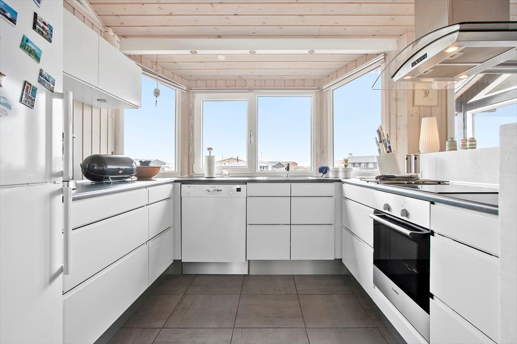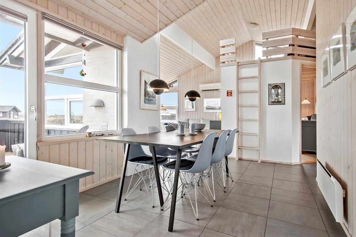 Lediglich 200 Meter trennen dieses Ferienhaus von Harerendens schöner Küstenlinie und den blauen Nordseewellen. Sie können nach Herzenslust in der Nordsee baden, nach schönen Steinen an der Wasserkante suchen und dem Weg folgen, der Sie entlang der Küste gen Norden nach Skallerup und gen Süden in den beschaulichen Ortskern Lønstrups führt. In Lønstrup treffen Sie auf eine gute Auswahl an Lokalitäten. Kunstinteressierte werden die zahlreichen Galerien und Kunsthandwerkerwerkstätten erfreuen. Falls die Sauna und der Whirlpool Lust auf mehr gemacht haben, verbringen Sie am besten einen erholsamen Tag im Wellnesscenter des beliebten Skallerup Seaside Resorts. Zu den schönen Naturerlebnissen in der näheren Umgebung zählen Besuche der Inlandsdünen von Skallerup und der mehr als imposanten Wanderdüne Rubjerg Knude samt gleichnamigem Leuchtturm.