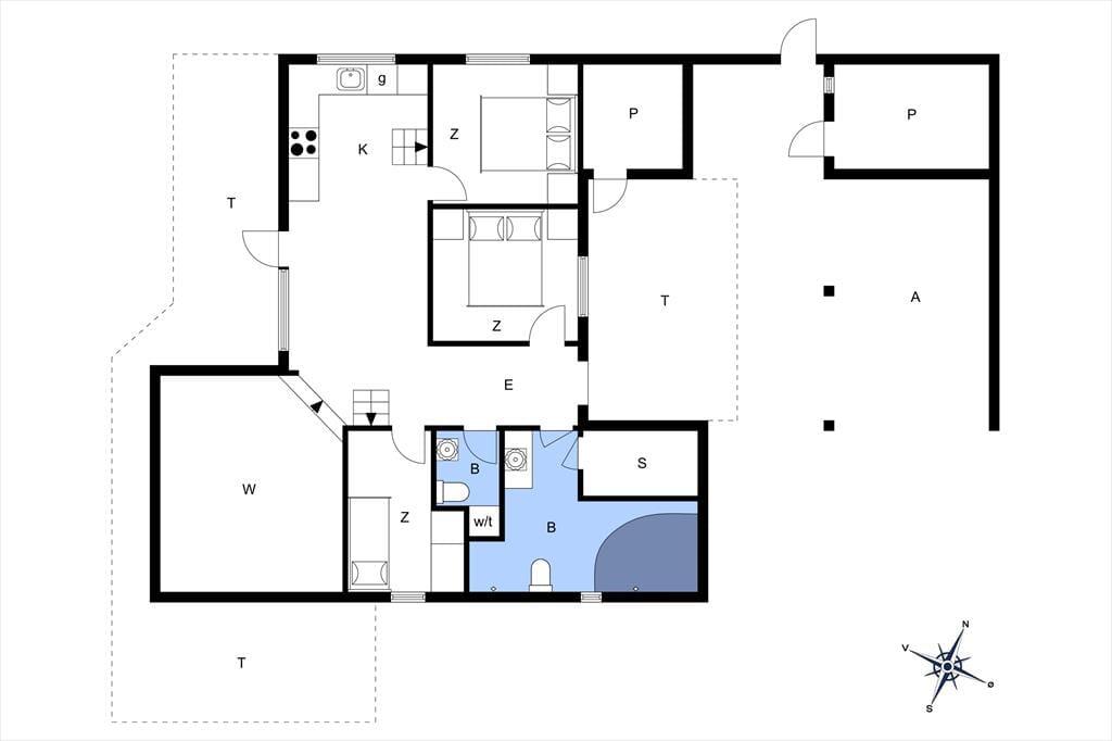 Der Eckwhirlpool und die Sauna, die beide im Badezimmer des Hauses platziert sind, verleihen Ihren Urlaubstagen einen Hauch von Wellnessflair. Erholsam und entspannt geht es auch im Wohnraum zu, in dem ein Kaminofen und eine Polstersitzgruppe zu gemütlichen Stunden mit einem guten Buch oder einen Film auf dem Flachbild-TV einladen. Der Wohnraum liegt ein wenig tiefer als der Küchen- und Essbereich und ist über ein paar Stufen erreichbar. Die Küche bietet Ihnen alles, was Sie für die Zubereitung Ihrer Mahlzeiten benötigen - inklusive eines Geschirrspülers. Neben dem bereits erwähnten Badezimmer steht Ihnen ein Gäste-WC zur Verfügung. Die Schlafplätze verteilen sich auf zwei Zimmer mit je einem Doppelbett und auf einen Schlafraum mit einem Schlafsofa.