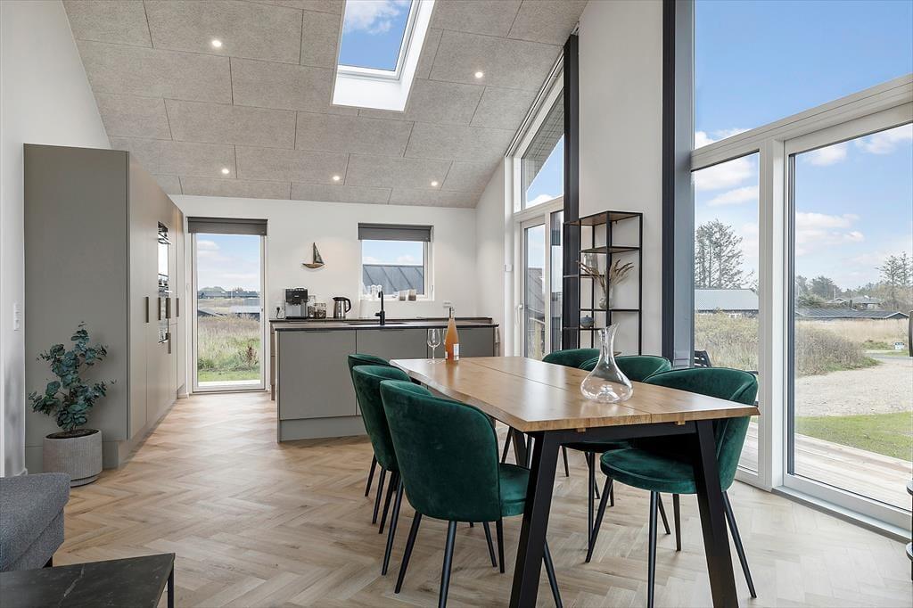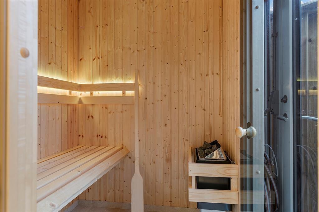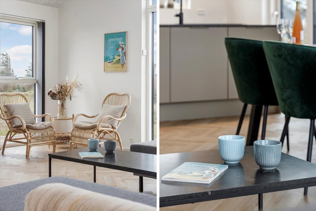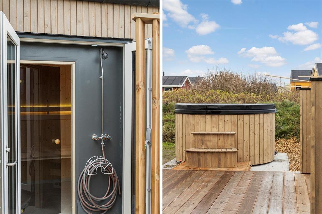 Ganz gleich, ob sich das Wetter für gemütliche Stunden im Haus oder für entspannte Stunden in der Sonne anbietet, dieses stilvoll eingerichtete, im Jahr 2023 erbaute Ferienhaus bildet einen fantastischen Rahmen für gelungene Urlaubstage in Lønstrup. Selbst an kühlen Tagen haben Sie die Möglichkeit, das tolle Terrassenareal zu nutzen, da hier ein schöner Wellnessbereich mit einer schwedischen Badetonne und einer Sauna für Sie bereitsteht.