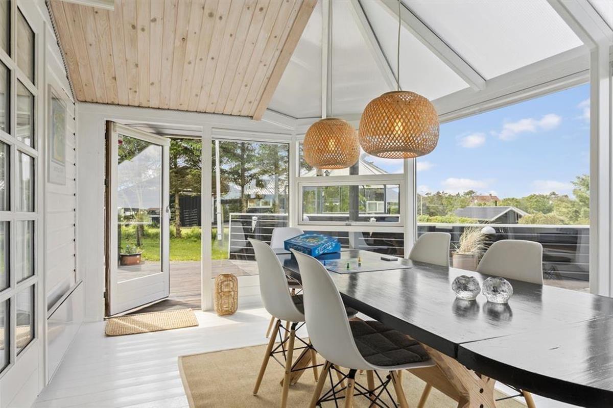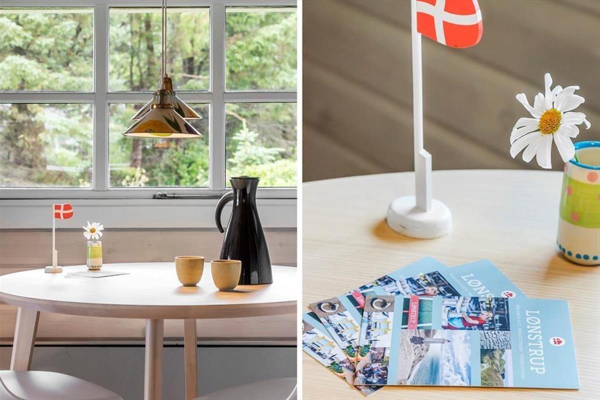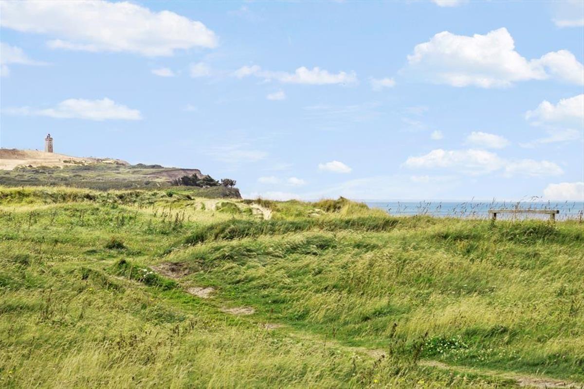 Jollevej liegt in einem ruhigen und schönen Gebiet nahe der Stadt Lønstrup. Unterhalb der Rasenfläche des Hauses führt ein kleiner Weg hinunter zum gemütlichen Ortskern und in der Verlängerung der Hauptstraße finden Sie den Strand. Das charmante Städtchen, das von großen, schönen Villen aus den 1920er Jahren umgeben ist, die auch als Cottage-Viertel bekannt sind, bietet Dänemarks größte Konzentration von Handwerkern. Die Werkstätten bieten alles von Töpferwerkstätten, Glasbläsern, Goldschmieden bis hin zu Galerien und kleinen gemütlichen Cafés sowie einem von zwei Michelin-Sternerestaurants mit Panoramablick auf die Nordsee. Entlang der Steilküste und nur wenige Kilometer von der Stadt entfernt befindet sich der berühmte und kultige Leuchtturm Rubjerg Knude, von dem aus Sie die wunderschöne, dramatische Küstenlinie genießen können.