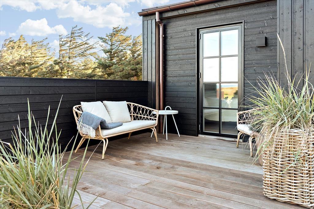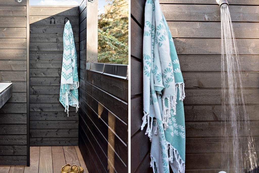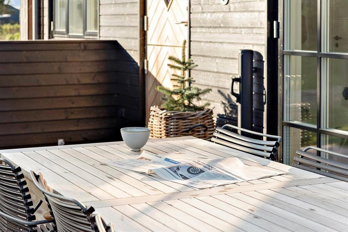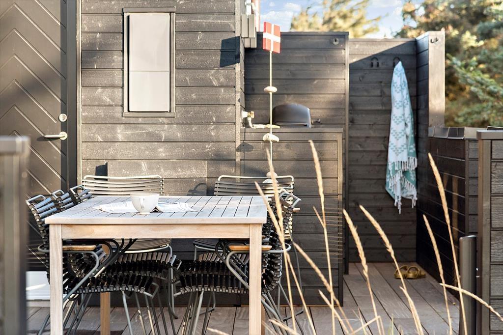 Auf der Westterrasse werden Sie sich bestens erholen und die Urlaubsstimmung genießen. Die Terrasse wirkt wie eine private Oase inmitten schöner Natur. Sie blicken auf Sanddornsträucher und genießen den Duft der Heckenrosen, während Sie die Wärme der Sonne oder auch ein warmes Getränk genießen. Auf der anderen Hausseite steht eine weitere Terrasse zur Verfügung. Mit einer Außendusche und einer Außenküche bietet Ihnen diese Terrasse beste Möglichkeiten, viel Zeit im Freien zu verbringen.
