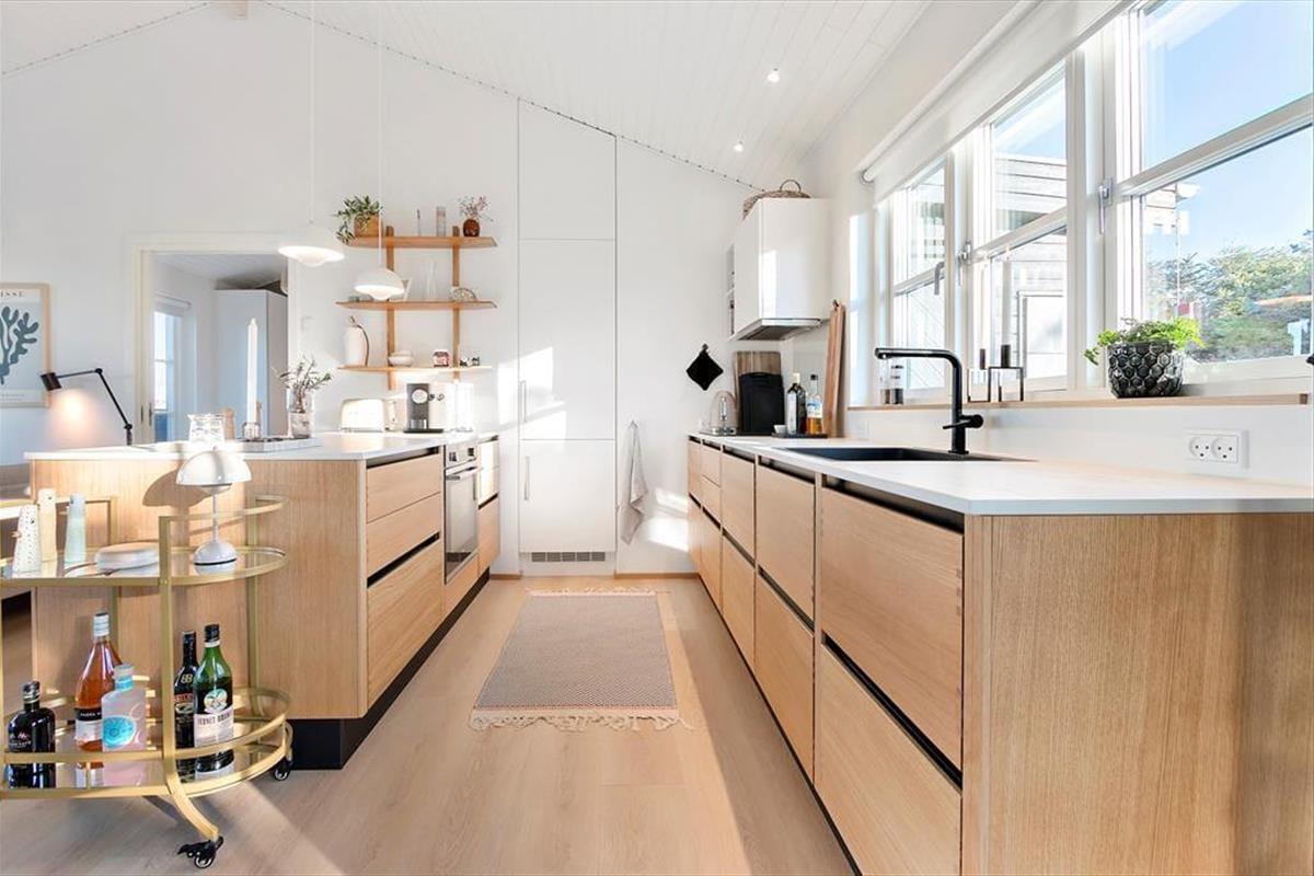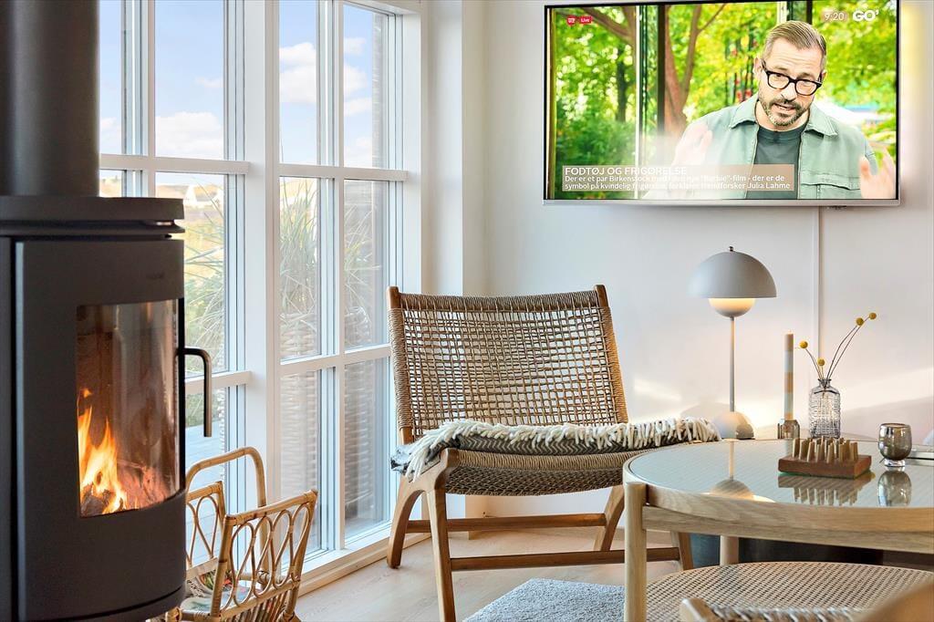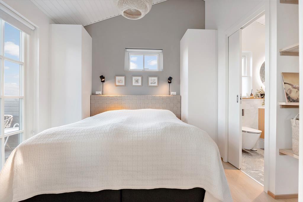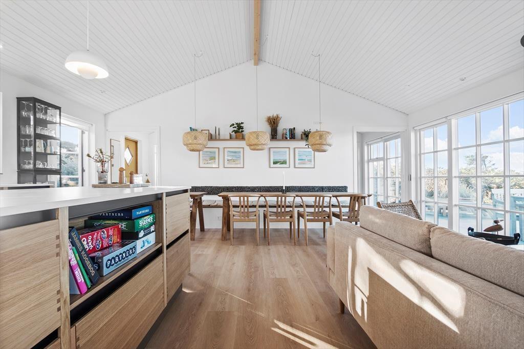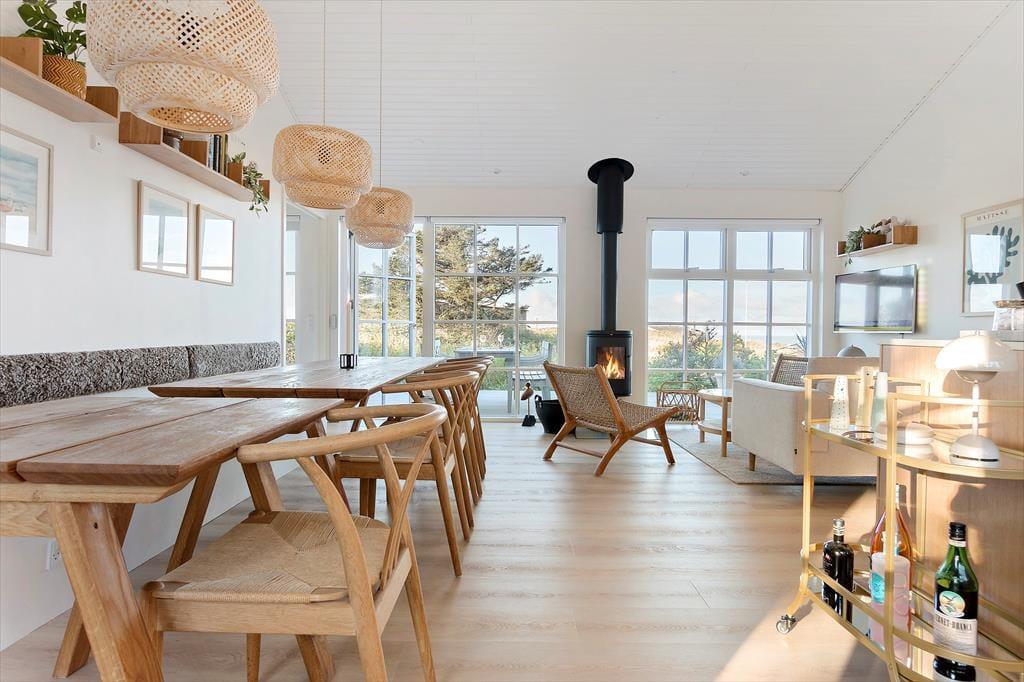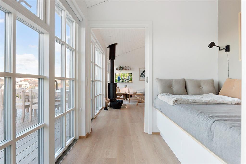 Das 100 m² große Ferienhaus aus dem Jahr 2023 wurde aus besten Materialien errichtet und hochqualitativ möbliert. Sie dürfen sich daher auf ein ausgesprochen behagliches Wohnambiente freuen. Mit drei Schlafräumen mit je einem Doppelbett und zwei Badezimmern ist das Haus optimal auf eine Belegung mit sechs Personen abgestimmt. Alle Räume präsentieren sich sehr einladend. Dies gilt nicht zuletzt für den Aufenthaltsbereich, der die Küche und den Wohnraum offen in sich vereint. Der Kaminofen, die Schlafnische und das schöne Licht, das durch die großen Sprossenfenster in den Raum fällt, tragen zum gelungenen Gesamteindruck bei. Wunderbar abgerundet wird dieser schöne Eindruck durch den Blick auf das Meer am Horizont.