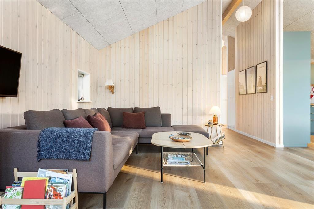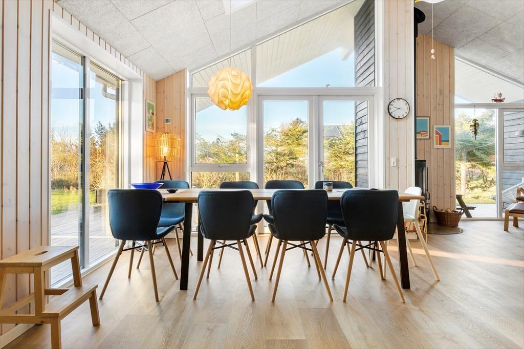 Da dieses Ferienhaus erst im Jahr 2022 erbaut wurde und mit einer guten Ausstattung und einer qualitativ hochwertigen Möblierung besticht, wirst du dich in diesem Haus vom ersten Moment an wohlfühlen. Mit drei Schlafräumen und zwei Badezimmern beherbergt das Mietobjekt bis zu sechs Personen. Ohne weiteres kannst du daher beispielsweise die Großeltern in den Urlaub einladen. Egal, mit wie vielen Familienmitgliedern du anreist, es ist einfach herrlich, sich im hellen Wohnraum mit hohen Decken aufzuhalten. In diesem Raum genießt ihr gesellige Essen am Esstisch, der mit Aussicht auf die Bäume des Grundstücks verwöhnt. Entspannte Nachmittage und Abende verbringt deine Familie mit Büchern, Kreuzworträtseln und Kartenspielen in der Polstersitzgruppe. Zum ein oder anderen Mittagsschläfchen lädt die kuschelige Schlafnische des Wohnraums ein.