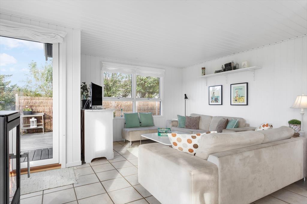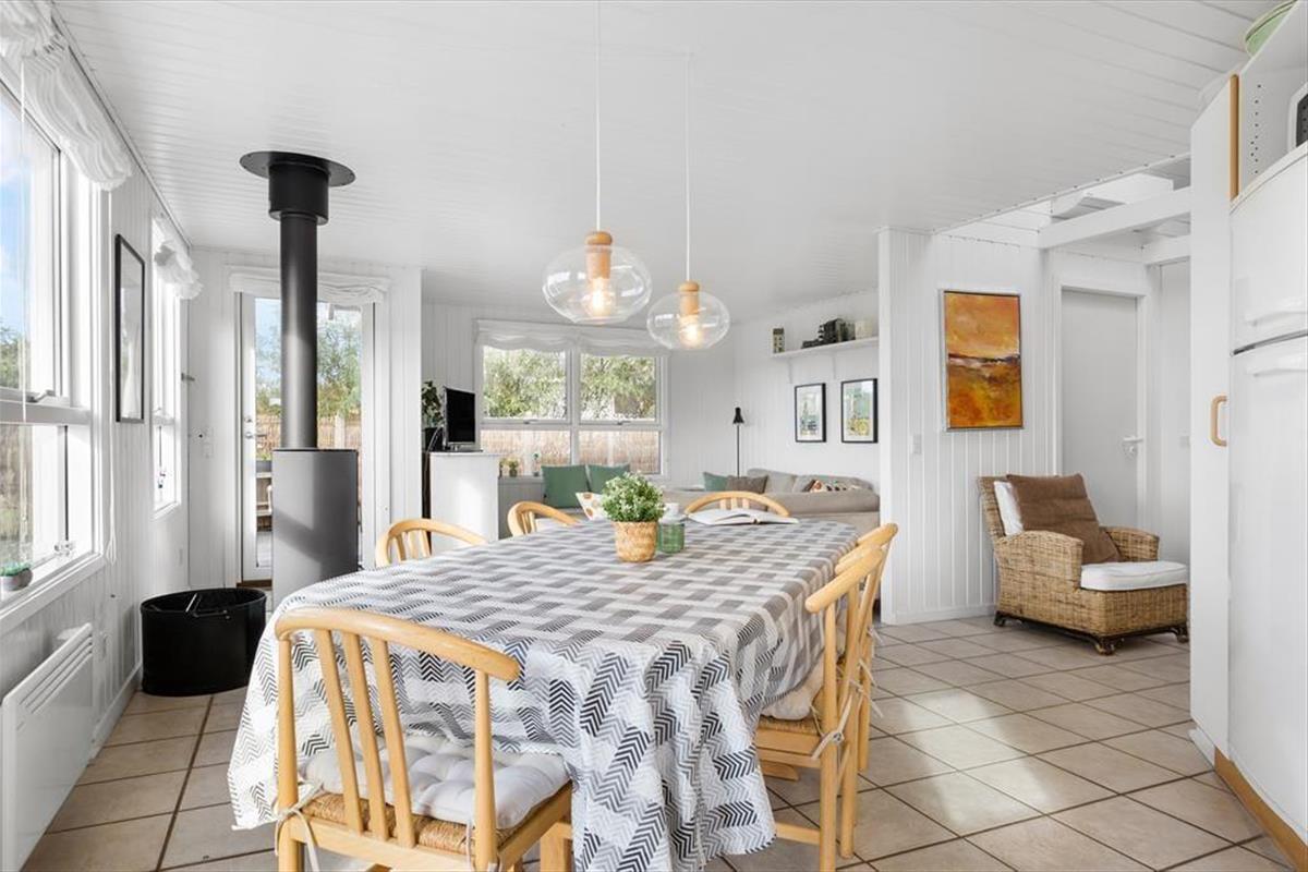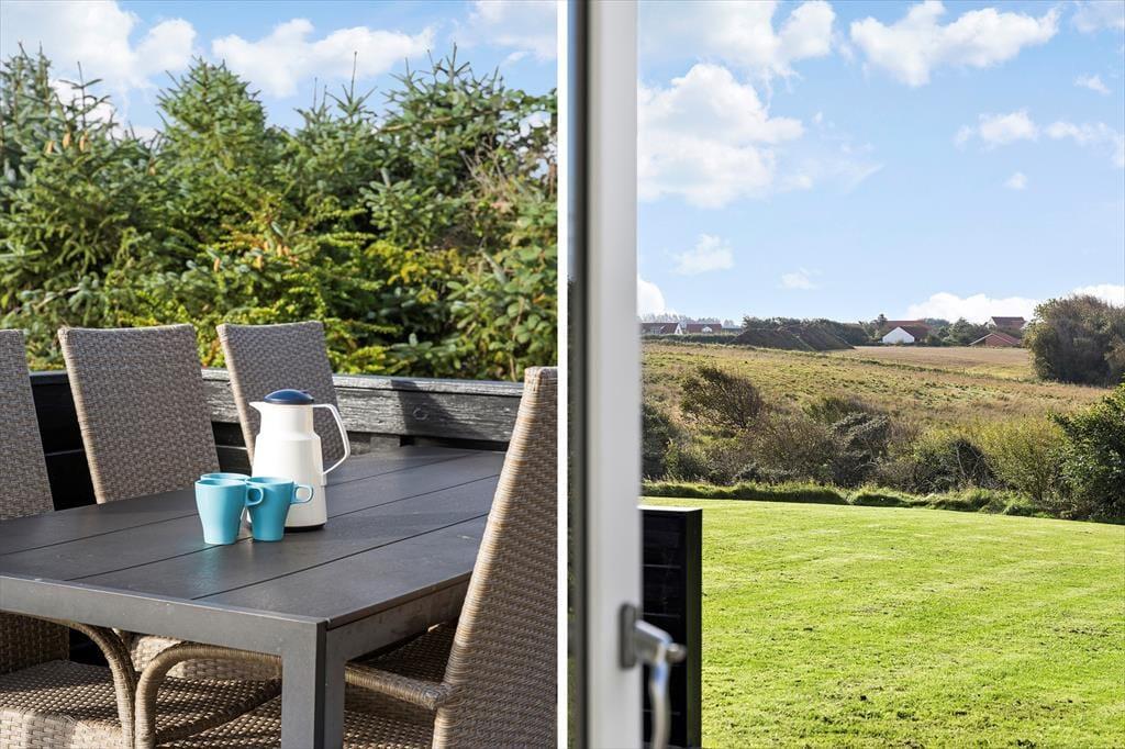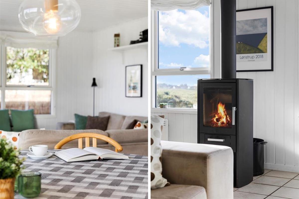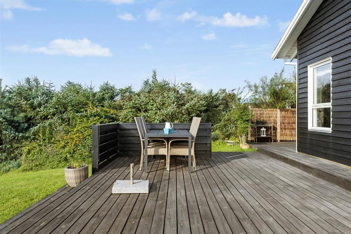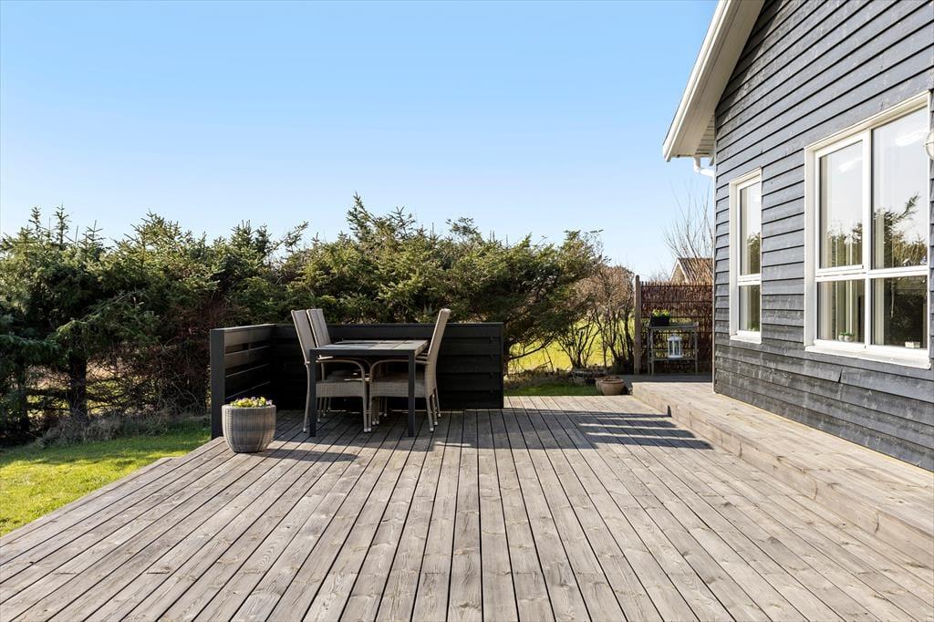 Vom Wohnraum trittst du direkt hinaus auf das schöne Terrassenareal, das gen Süden und Osten an das Ferienhaus schließt. Den gesamten Tag über stehen die Chancen gut, dass du einen schönen Aufenthaltsplatz in der Sonne findest. Auf der Terrasse werdet ihr mit Aussicht auf offene Wiesen und Felder, Bäume und die Hausdächer Lønstrups verwöhnt. Entspannten Stunden steht demnach nichts im Wege. Das Grundstück ist angenehm groß. Deine Kinder und dein Hund können nach Herzenslust in friedvoller Umgebung spielen und umhertollen, es sei denn, ihr brecht gemeinsam zu Erkundungstouren in den Ort oder die Umgebung auf.