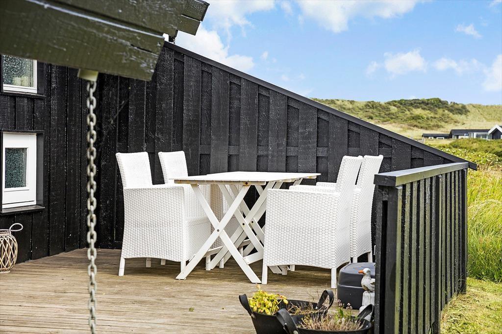 Die schönen Terrassen, die sich in Verlängerung des Ferienhauses befinden, runden das Urlaubserlebnis bei schönem Wetter hervorragend ab. Wenn du gerne und viel im Freien bist, kannst du bereits früh am Morgen mit deinem ersten Becher Kaffee auf die Ostterrasse hinaustreten. Später am Tag wird es dich vermutlich auf die gen Südwesten ausgerichtete und teilweise überdachte Terrasse ziehen. Falls du mit deiner Familie keine anderweitigen Pläne für den Tag geschmiedet hast, kannst du auf dieser Terrasse in aller Ruhe und angenehm entspannt bis zum Einbruch der Dunkelheit sitzen bleiben - unterbrochen lediglich von einem kurzen Abstecher an die Steilküste Lønstrup Klit, an der du mit Aussicht auf den traumhaft schönen Sonnenuntergang verwöhnt wirst.