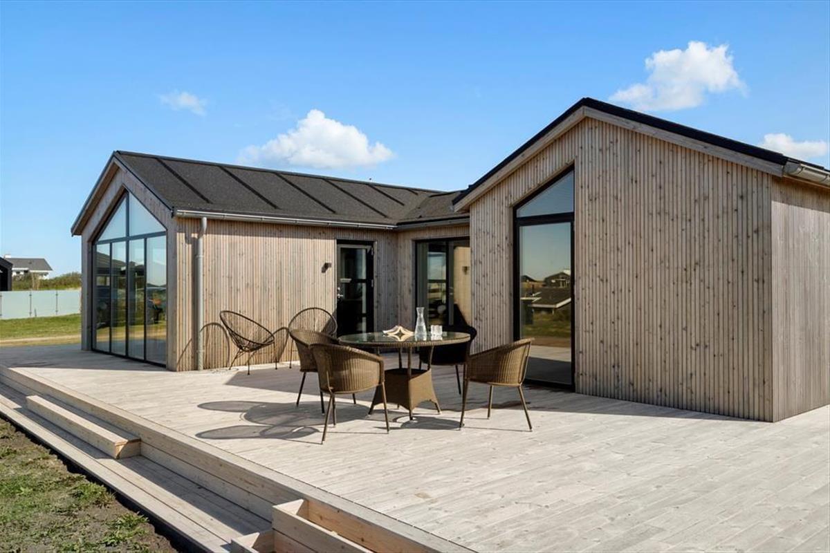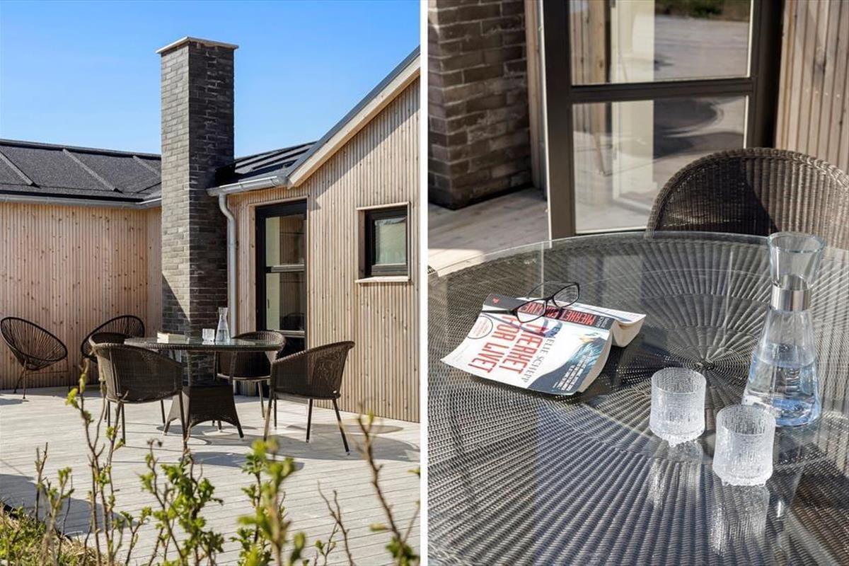 Eine große schöne Holzterrasse erstreckt sich rund um das Ferienhaus, sodass es einfach ist, den besten Aufenthaltsort zu finden, egal ob ihr die Sonne oder den Schatten sucht. Natürlich ist die Aussicht auch hier erstklassig, und ihr werdet feststellen, dass die Luft besonders frisch und sauber ist, wenn ihr hier nur 400 Meter vom Meer entfernt sitzt. Wenn der Abend naht, könnt ihr euch überlegen, was ihr essen und auf den Gasgrill legen wollt. Und wenn ihr gegessen habt und die Sommersonne sich anschickt, unterzugehen, könnt ihr überlegen, ob ihr den Sonnenuntergang von der Terrasse aus genießen oder zum Gipfel des Lønstrup Klint hinaufgehen wollt.