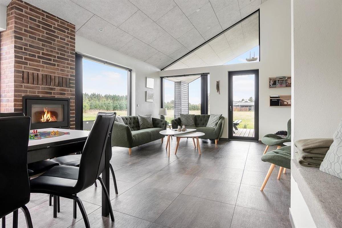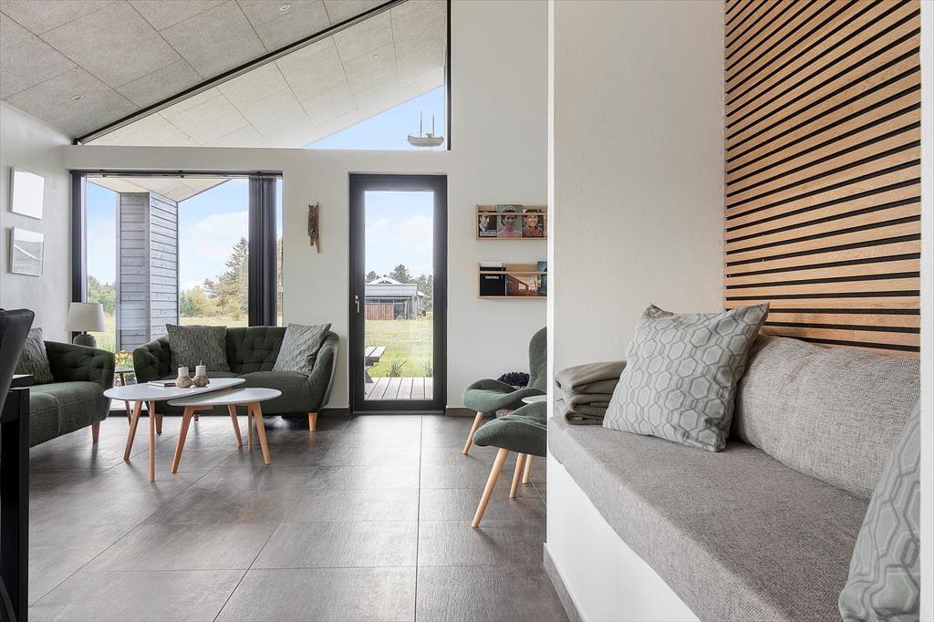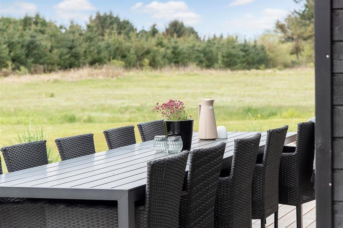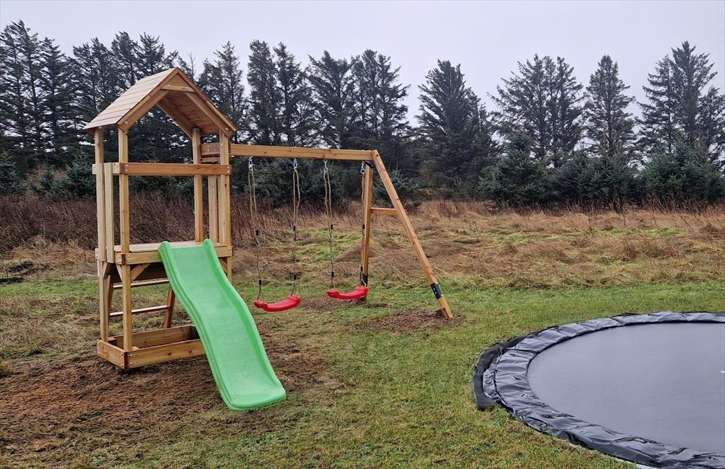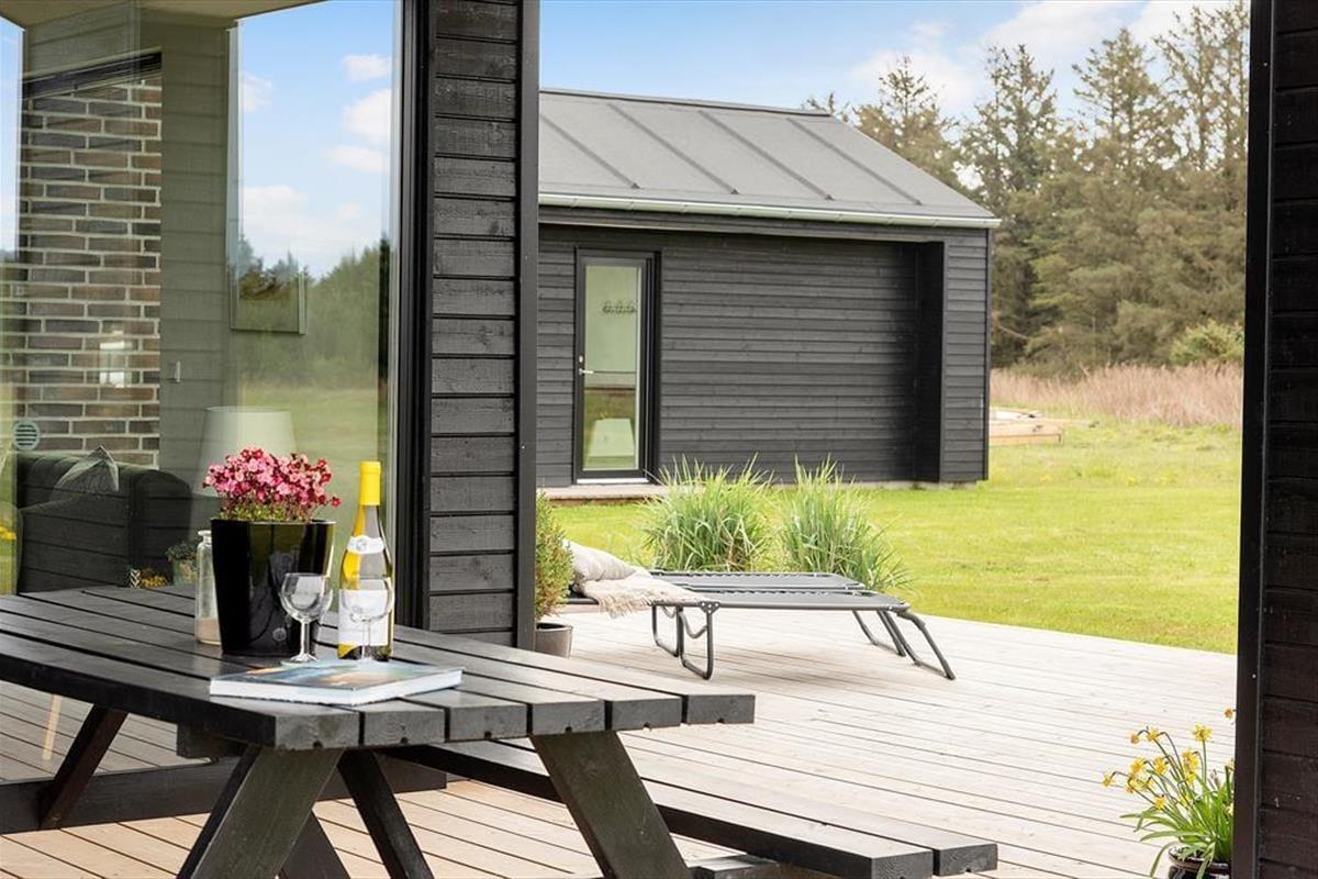 Das Ferienhaus liegt sehr ruhig und abgelegen auf einem 1843 m2 großen Naturgrundstück. Es ist weit weg von den umliegenden Häusern, so dass du wirklich das Gefühl hast, in der freien Natur zu sein. Vom Wohnbereich aus gibt es mehrere Ausgänge zur Terrasse, die sich rund um das Haus erstreckt und ein idealer Ort ist, um im Liegestuhl mit einem guten Krimi zu entspannen und die Ruhe zu genießen. Es gibt auch viel Platz, um den Tisch für gemütliche Mahlzeiten im Freien zu decken - und ein Teil der Terrasse ist überdacht, so dass du auch bei Sommerregen im Freien sitzen kannst. Das große Grundstück bietet außerdem eine ebene Rasenfläche, auf der die jüngsten Familienmitglieder spielen können.