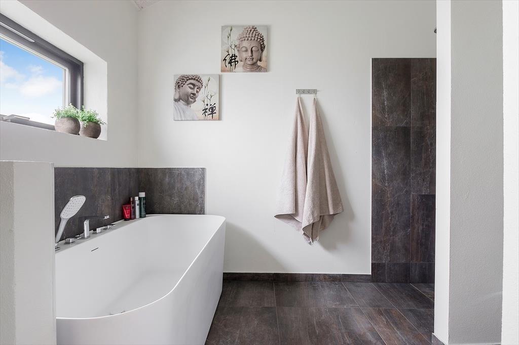Das Haus verfügt über vier Schlafzimmer und zwei Badezimmer. Die Luft-Wasser-Wärmepumpe bewirkt, dass das Haus kostengünstig zu betreiben ist.