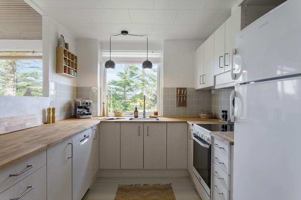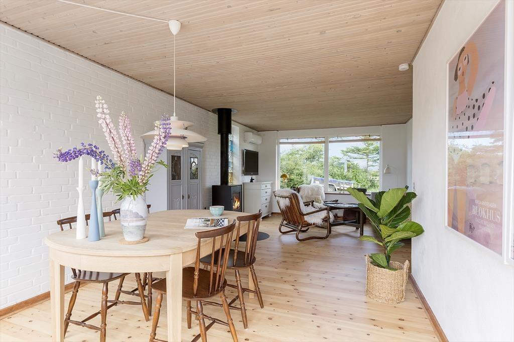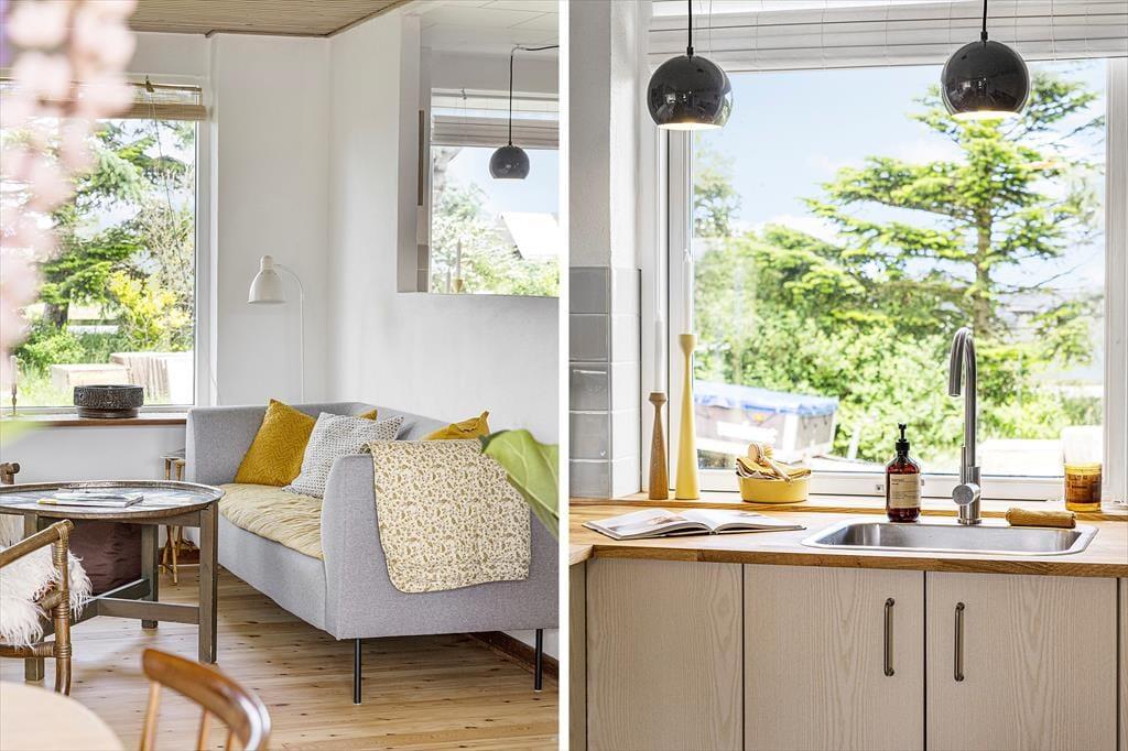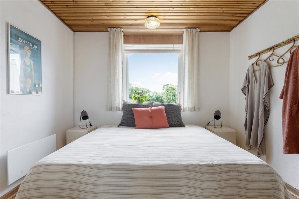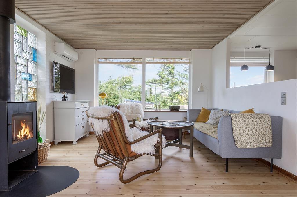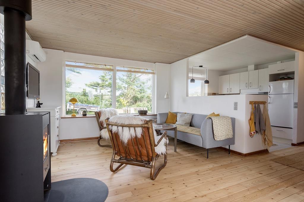 Das Ferienhaus befindet sich seit 1968 im Møllebakkevej 30 und wurde 2024 gründlich renoviert, um es hell und einladend zu gestalten. Bei der Inneneinrichtung wurden sowohl modernes Design als auch Retro-Möbel verwendet, und mit natürlichen Materialien und angenehmen Farbtönen strahlen die Räume Gemütlichkeit und Entspannung aus. Ein langer Nachmittag auf dem Sofa neben dem knisternden Holzofen ist perfekt, um mit einem guten Buch zu entspannen oder mit deinem Strickprojekt fertig zu werden. Und wenn du dich darauf freust, viel Zeit zum Kochen zu haben, kannst du dich schon jetzt auf das Kochen in der offenen Küche freuen. Mit zwei Schlafzimmern und einem Duschbad ist die Aufteilung perfekt für vier Personen, und auch ein Hund ist willkommen.