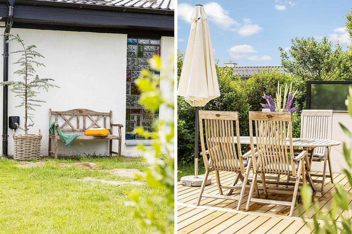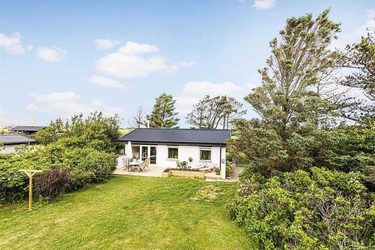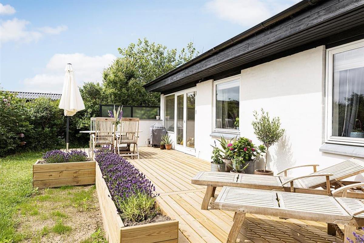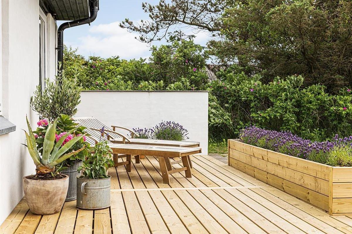 Das Grundstück ist 1203 m2 groß und vor allem der geschlossene Garten wird im Sommer schnell zu deinem Lieblingsplatz. Kinder und Hunde können sich auf dem Rasen austoben und du musst nur von deinem Liegestuhl hochkommen, wenn du mitmachen willst. Die Holzterrasse ist nach Süden ausgerichtet. Genieße den Duft der Blumen oder den Blick auf die Hagebuttensträucher, während du dich auf der Sonnenliege entspannst oder den Tisch im Schatten des Sonnenschirmes auf der Terrasse für das Abendessen deckst.Am Abend lässt es sich wunderbar grillen – falls du nicht in den Ort Lønstrup fährst, um in einem Café oder Restaurant zu essen.