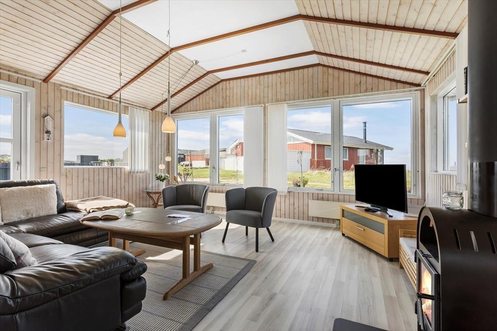 Beim Betreten des Ferienhauses wirst du sofort von einer hellen und gepflegten Atmosphäre empfangen, die vom ersten Moment an für echtes Urlaubsgefühl sorgt. Große Fensterfronten lassen viel Tageslicht herein und bieten dir gleichzeitig einen atemberaubenden Blick auf das Meer und die offene Landschaft rund ums Haus – die perfekte Kulisse für entspannte Urlaubstage mit Familie und Freunden. Der Grundriss des Hauses ist gut durchdacht, mit einer natürlichen Trennung zwischen Ess- und Wohnbereich, sodass sich die ganze Gruppe problemlos zu den Mahlzeiten versammeln kann, ohne auf Ruhe und Erholung verzichten zu müssen. Hier ist Platz für gemeinsames Beisammensein ebenso wie für Rückzugsmomente – ob bei einer Tasse Kaffee und einem guten Buch oder beim Abendessen mit Blick auf den Sonnenuntergang: So fühlt sich Urlaub an.