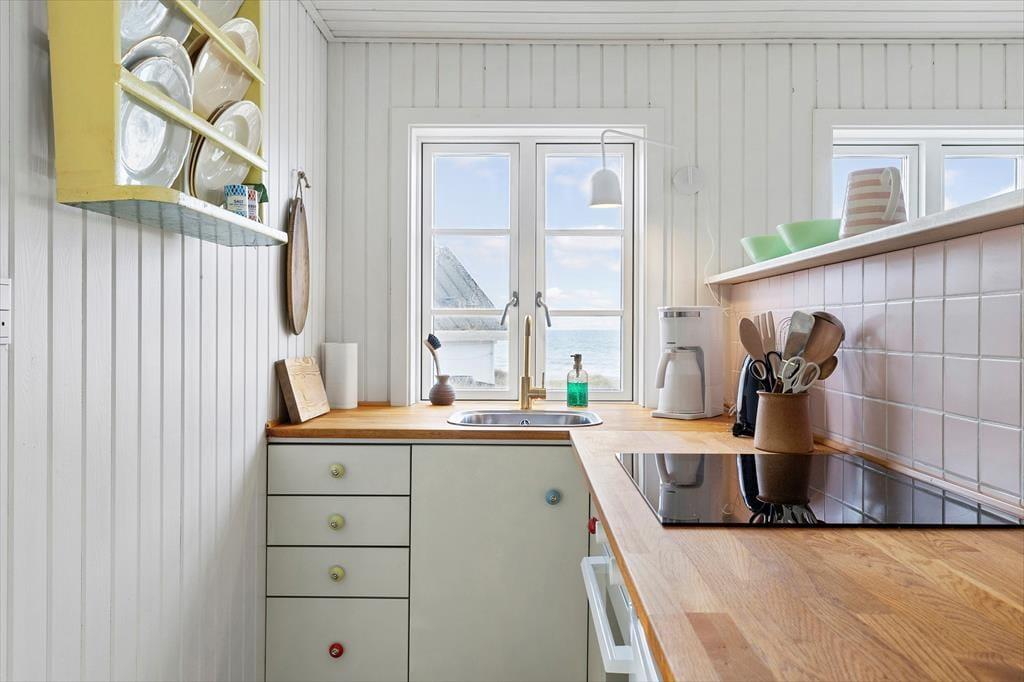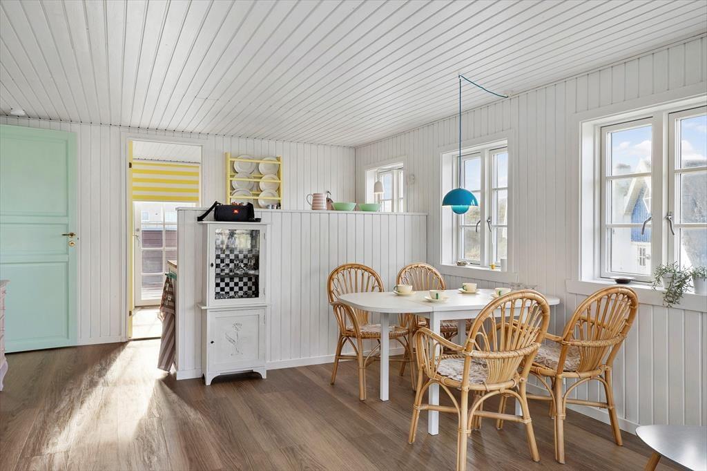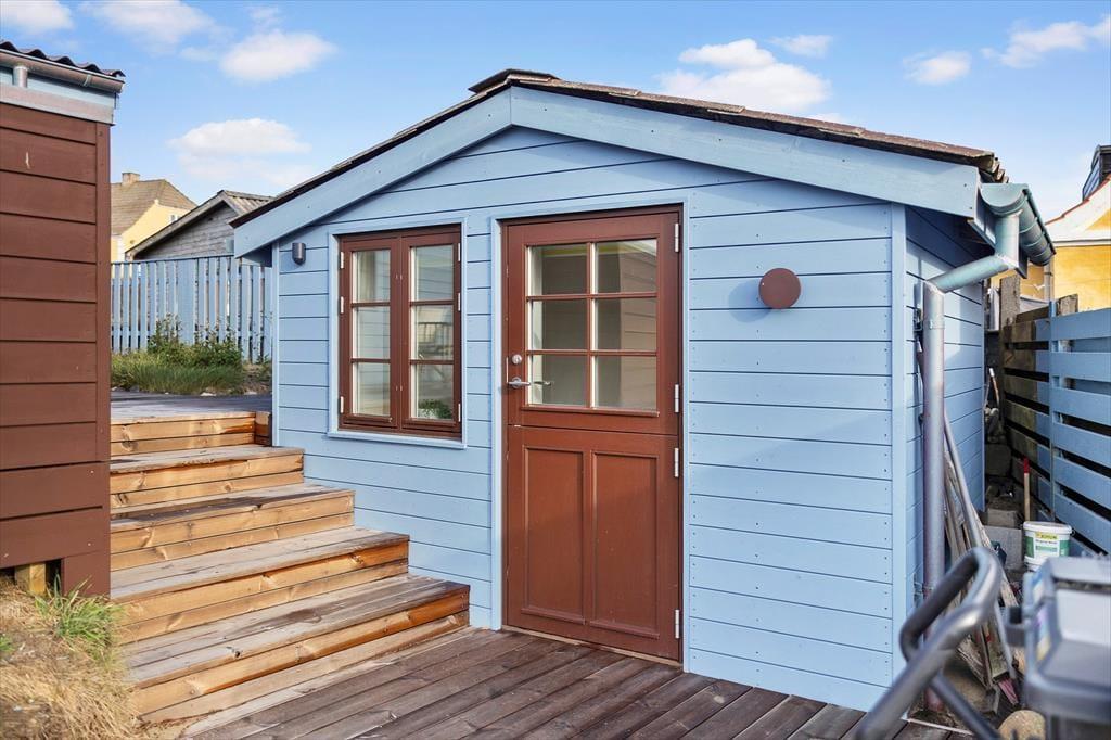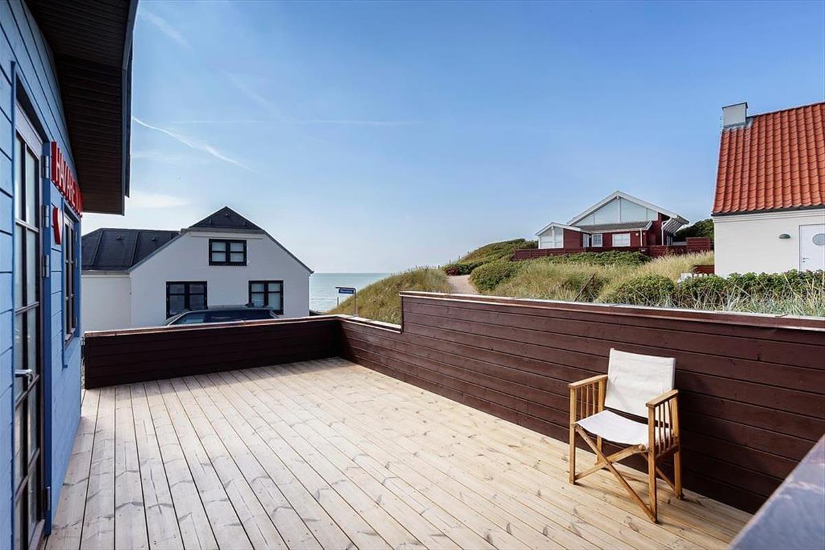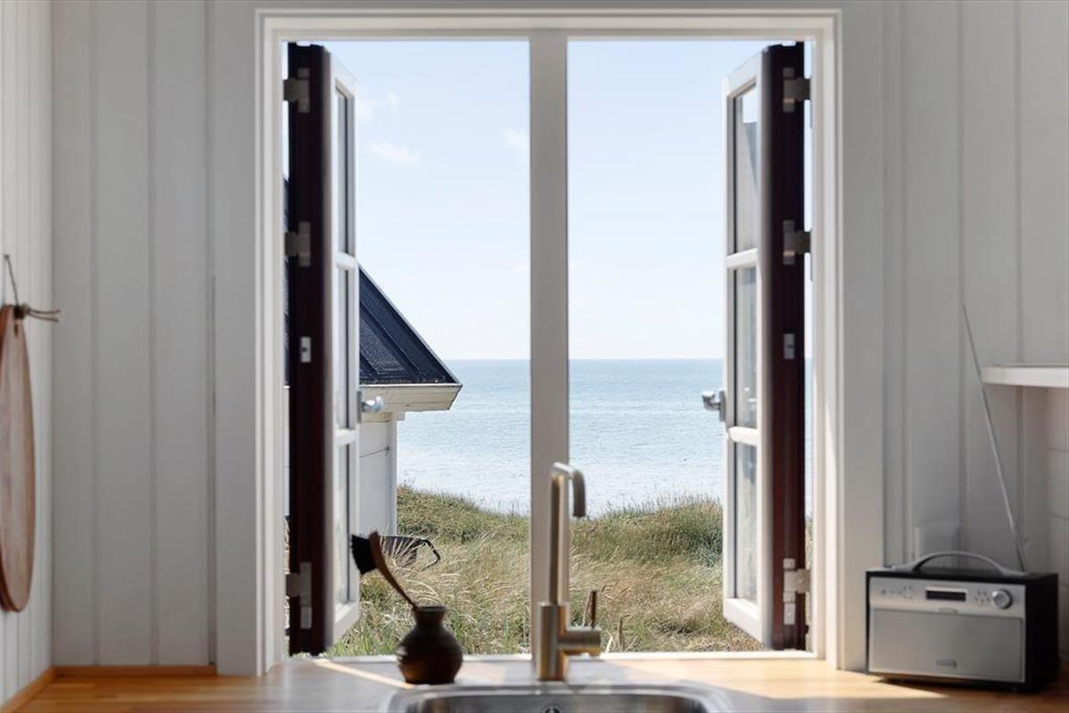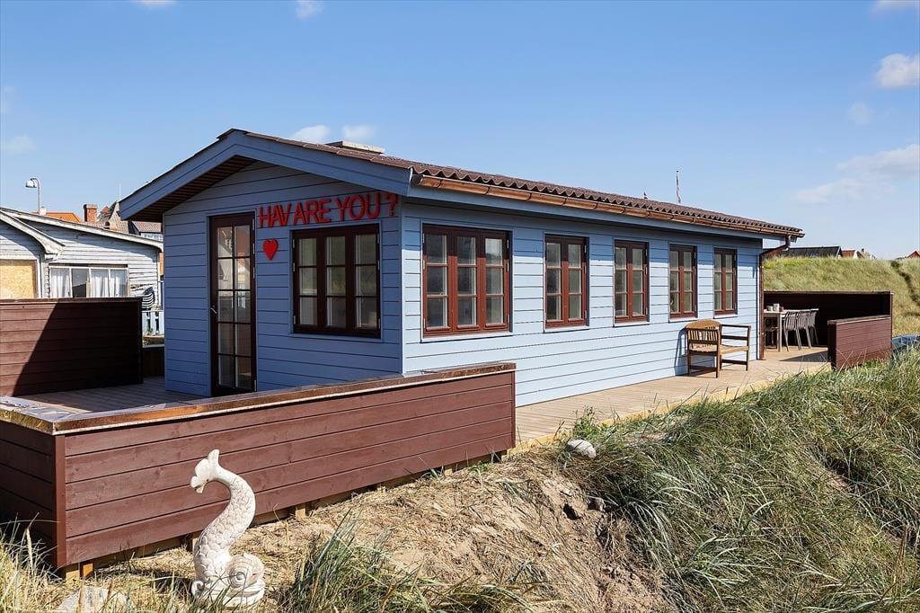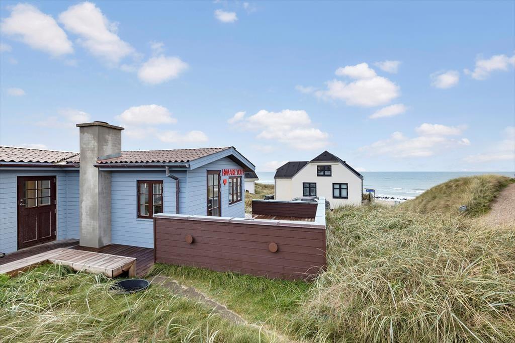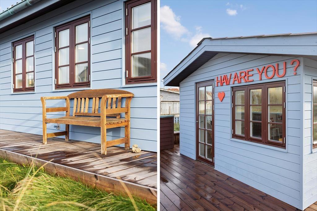 Rund um das Haus verläuft eine große Holzterrasse mit Meerblick und viel Privatsphäre. Starte den Tag mit einer ruhigen Tasse Kaffee in der Morgensonne und beende ihn mit einem Glas Wein an einem lauen Sommerabend. Die Terrasse ist mit bequemen Gartenmöbeln ausgestattet – mit Sonnen- und Schattenplätzen. Nur wenige Schritte und du stehst mit den Füßen im warmen Sand am Strand. Das Stadtleben ist direkt hinter dem Haus – Einkaufsmöglichkeiten, Restaurants und Kunsthandwerk sind in wenigen Minuten zu Fuß erreichbar. Sauna inklusive.