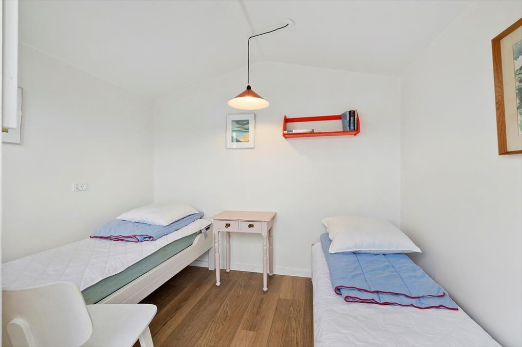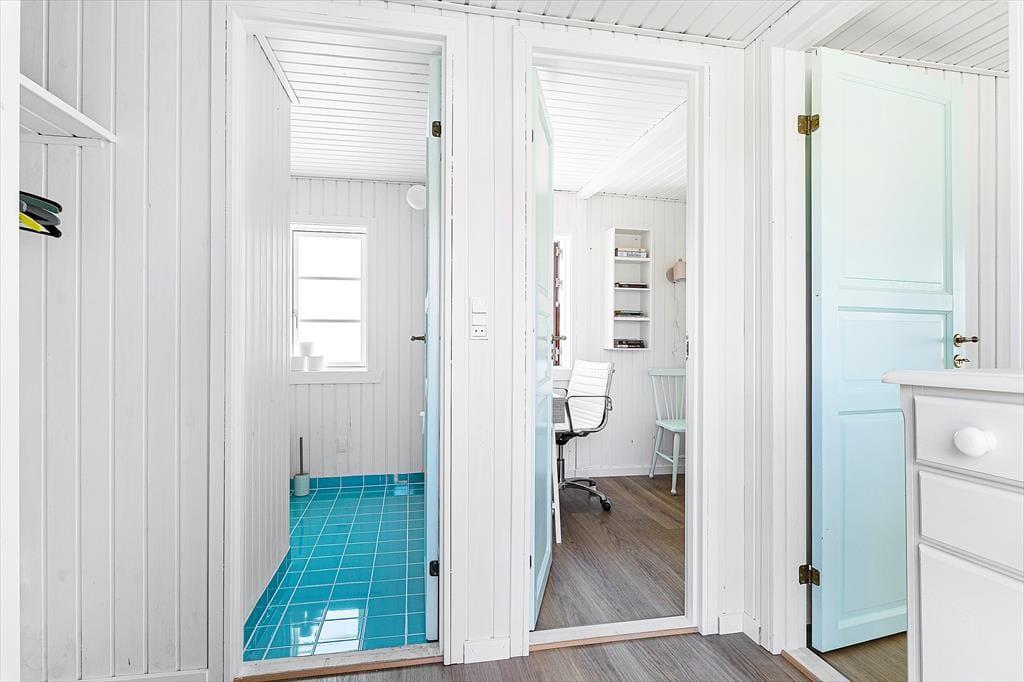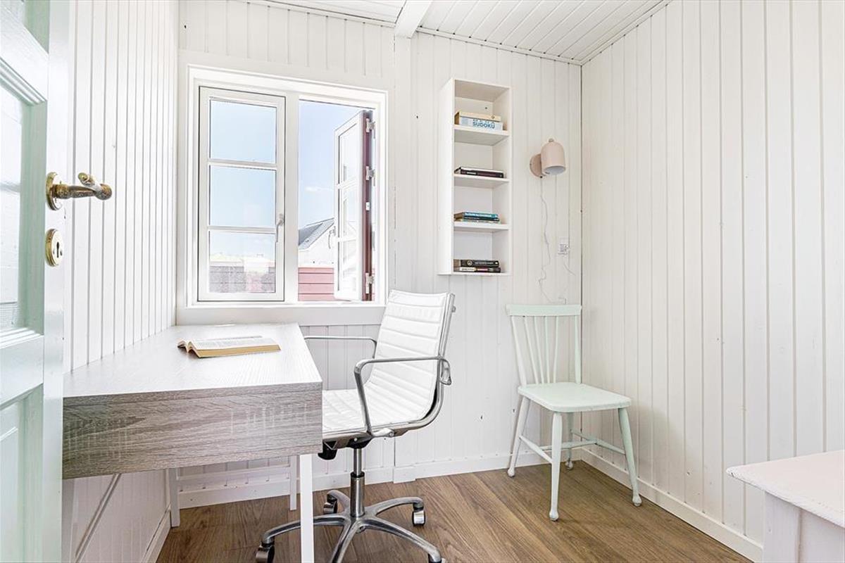 Es gibt ein schönes Schlafzimmer mit Platz zum Kuscheln, und ein weiteres Zimmer dient als Arbeitszimmer. Die Eigentümer – beide Autoren – schreiben hier an ihren Büchern, wenn sie selbst im Haus sind. Der Arbeitsplatz soll alle Gäste inspirieren, die das Haus nutzen, um kreativ zu sein. Das Haus ist farbenfroh – aber das Erste, was einem auffällt, ist die Ruhe.