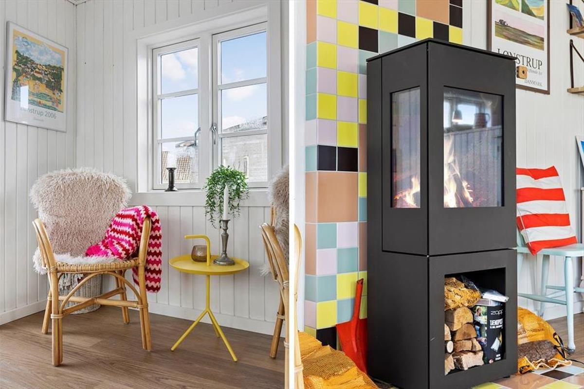 Die Welt ist bunt – genau wie dieses Haus, das einladend und lichtdurchflutet wirkt. Fühl dich wie zu Hause. Dusch im Blau – auch drinnen, denn das kleine Bad spiegelt das Meer wider. Der offene Wohnbereich mit Küche lädt zu Nähe und gemütlichen Stunden ein. An kalten Tagen sorgt der Kamin für behagliche Wärme.