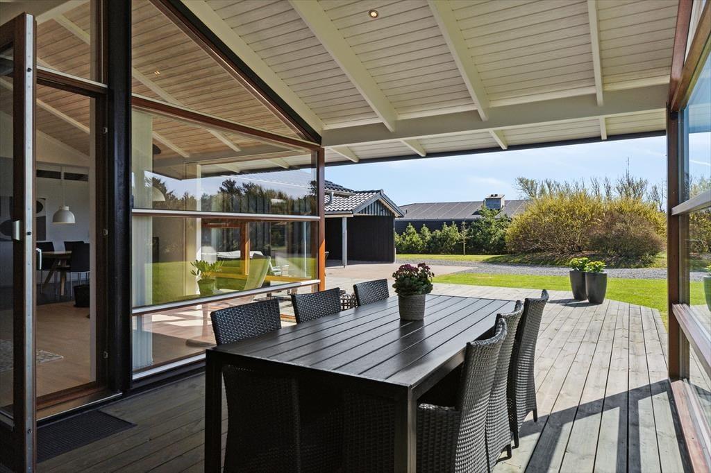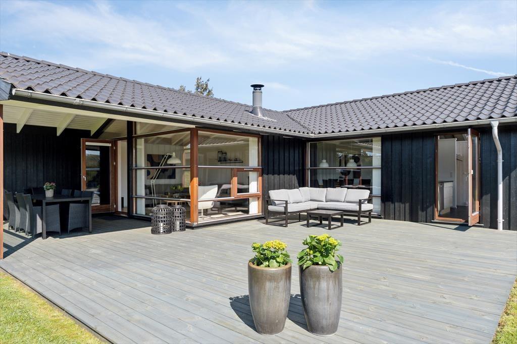 Das Leben draußen kann sich hier in der Bakkestjernevej wirklich entfalten. Das Ferienhaus liegt auf einem großen, grünen Grundstück mit viel Platz für Spiel, Erholung oder kleine Naturpausen, bei denen Sie einfach den Vögeln lauschen und den Wind in den Bäumen hören. Die großzügige Holzterrasse ist mit bequemen Gartenmöbeln ausgestattet. Egal, ob Sie den Morgenkaffee in der Sonne genießen oder das Abendessen unter freiem Himmel servieren – hier finden Sie immer das perfekte Plätzchen. Ein Teil der Terrasse ist überdacht, sodass Sie auch bei Tau oder einem kurzen Sommerregen draußen bleiben können. Hier sind die besten Voraussetzungen für gemütliche Grillabende, Brettspiele oder ein Glas Wein im Sonnenuntergang geschaffen. Oder legen Sie sich einfach mit einer Decke ins Gras, unter einen Baum – und lassen Sie die Ruhe auf sich wirken. Genauso fühlt sich echter Ferienhausurlaub an.