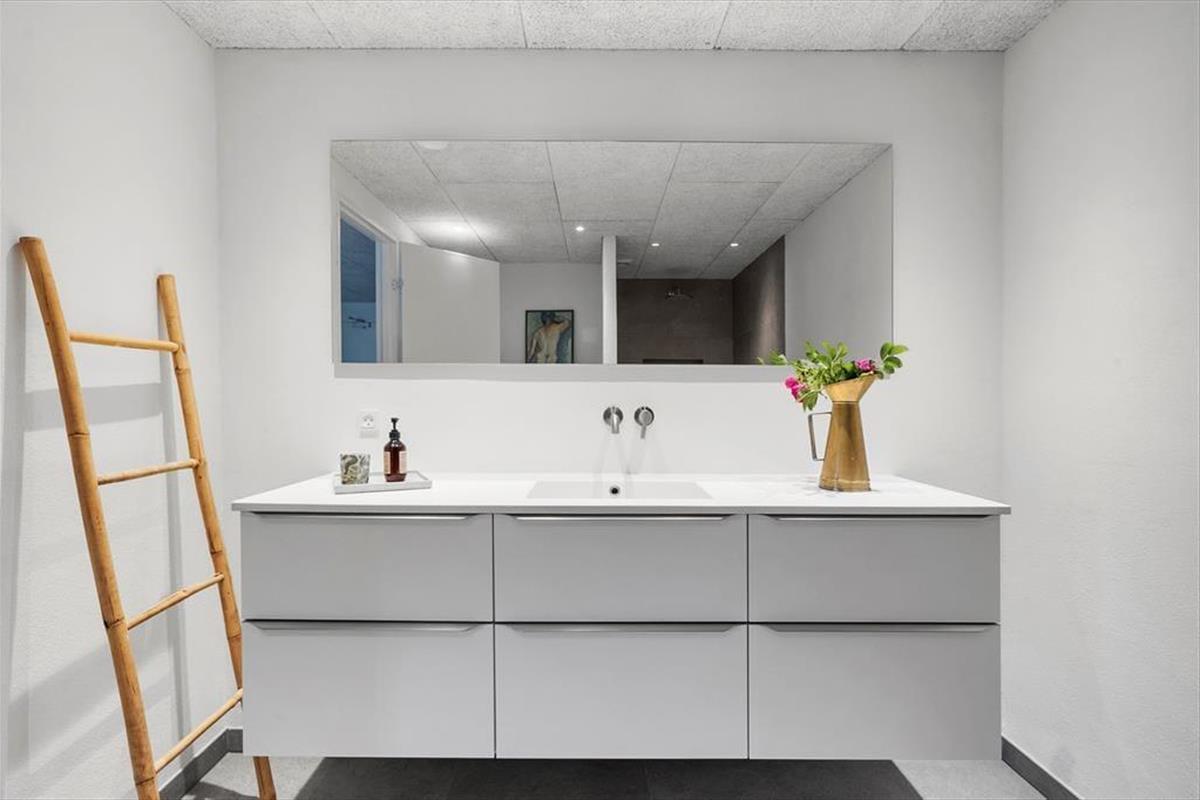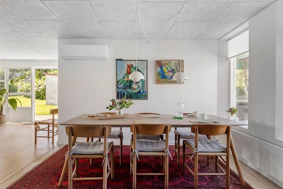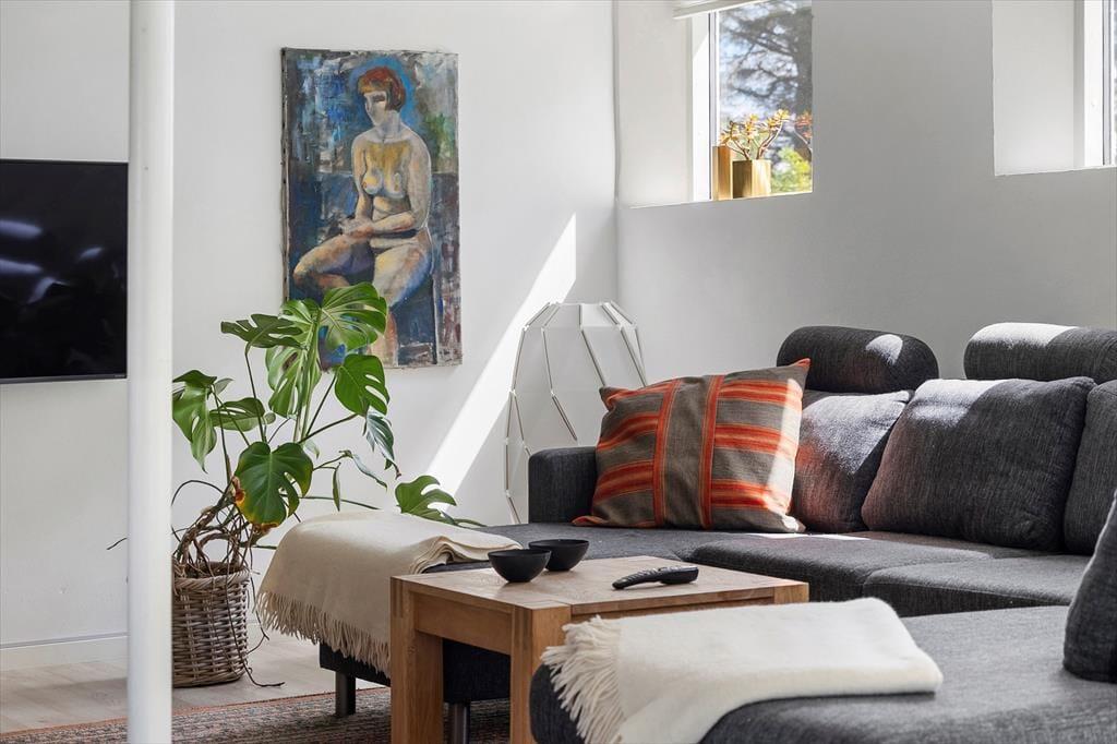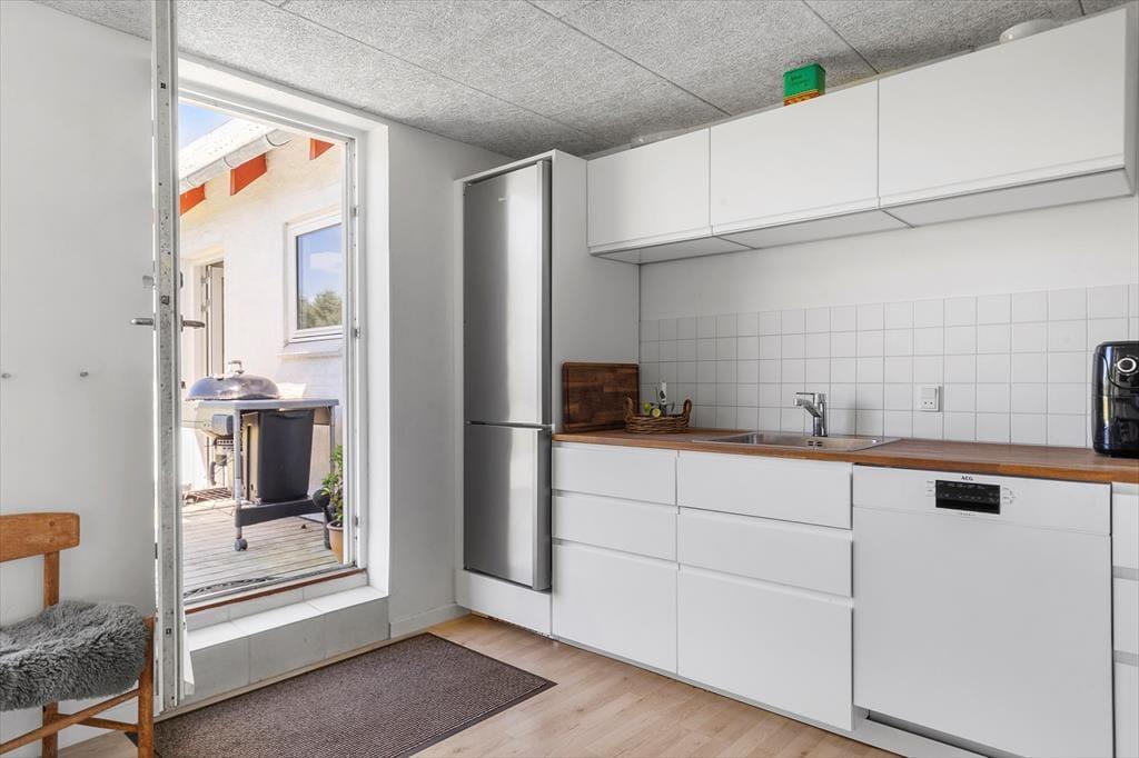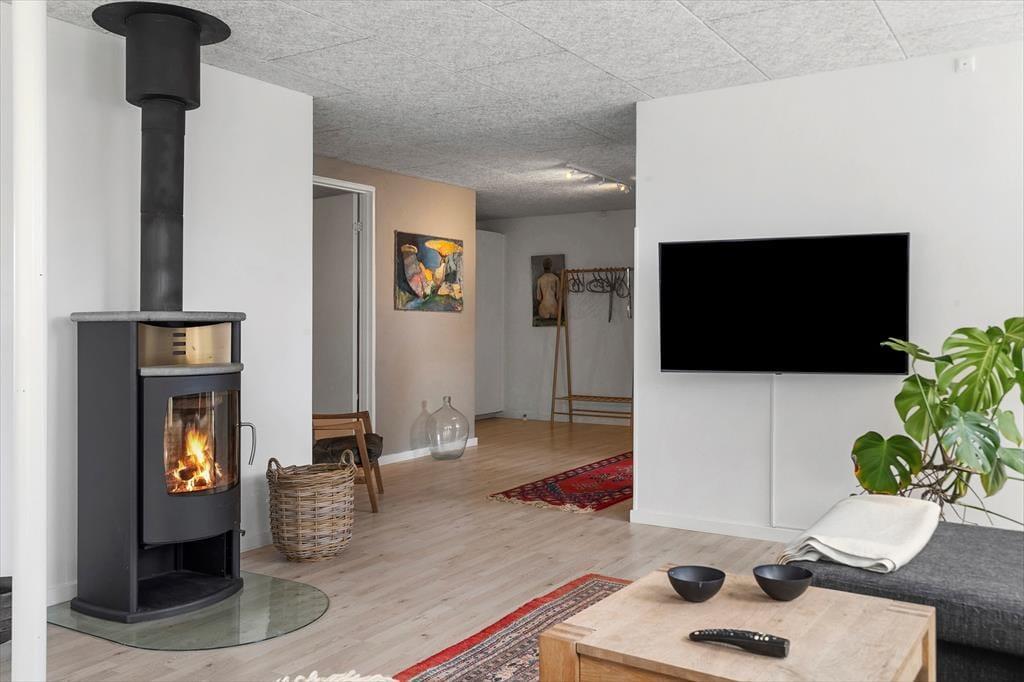 Die Wohnung präsentiert sich modern und stimmungsvoll mit einem gut durchdachten Grundriss und einladendem Lichteinfall, der sofort zum Durchatmen und Entspannen einlädt. Sie wurde 2020 umfassend modernisiert, was sich in den hellen Räumen mit sorgfältig ausgewählten Materialien und hohem Komfort deutlich bemerkbar macht. Im Wohnzimmer sorgt ein Kaminofen an kühleren Tagen für die klassische dänische Sommerhaus-Gemütlichkeit – mit dem Knistern der Flammen und wohliger Wärme. Der offene Wohnbereich bietet viel Platz für gemeinsame Momente – sei es bei einem Brettspiel am Esstisch oder beim Entspannen auf dem Sofa nach einem langen Tag am Meer. Das großzügige, frisch renovierte Badezimmer hat ein modernes Design mit viel Platz und guter Funktionalität – ideal für Paare oder kleine Familien, die sich während ihres Urlaubs in Lønstrup eine ruhige Basis wünschen.