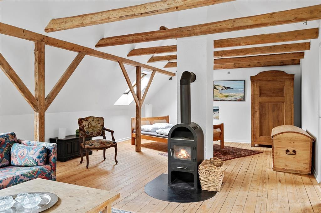 Das Ferienhaus strahlt Gemütlichkeit und Wärme aus – mit seinen hellen Räumen und der liebevollen Einrichtung, die 2020 behutsam erneuert wurde. Der Holzofen im Wohnzimmer sorgt für eine angenehme Atmosphäre – besonders an etwas kühleren Tagen, wenn das Knistern der Flammen und die wohlige Wärme den Wohnraum in einen perfekten Treffpunkt verwandeln. Die Einrichtung ist schlicht und komfortabel, und es gibt viel Platz und Ruhe für gemeinsames Beisammensein, Brettspiele, gemeinsames Kochen und Entspannung. Bitte beachten Sie, dass sich das Haus in der Winterzeit am besten für vier Personen eignet, da das Schlafzimmer im Obergeschoss etwas kühl werden kann, wenn die Außentemperatur sinkt. Unabhängig von der Jahreszeit ist es jedoch ein helles und einladendes Ferienhaus mit einer wohnlichen Atmosphäre, in der man sich sofort wohlfühlt.