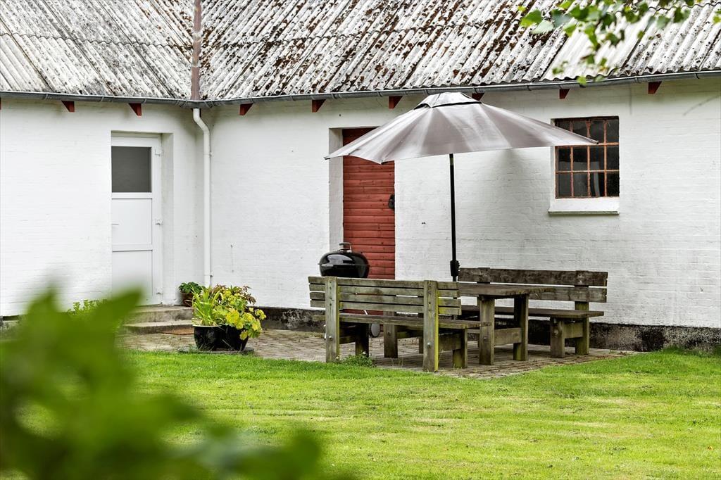 Der große, grüne Garten ist ein echtes Highlight und lädt dazu ein, das Urlaubsleben nach draußen zu verlegen. Hier gibt es viel Platz für Kinder zum freien Spielen, während die Erwachsenen eine Tasse Kaffee in der Sonne genießen oder sich in einer der gemütlichen Ecken des Gartens entspannen. Überall im Garten stehen Gartenmöbel bereit, sodass sich immer ein schönes Plätzchen finden lässt – ob in der Sonne, im Schatten oder einfach in Ruhe. Die südlich gelegene Terrasse lockt mit einem wunderschönen Ausblick über die umliegende Landschaft, und es ist nahezu unmöglich, hier zu sitzen, ohne die Schultern sinken zu lassen und den Moment zu genießen. Wenn der Abend hereinbricht, können Sie sich um die gemütliche Feuerstelle versammeln, Marshmallows rösten oder Geschichten unter dem Sternenhimmel erzählen. So fühlt sich Urlaub von seiner besten Seite an.