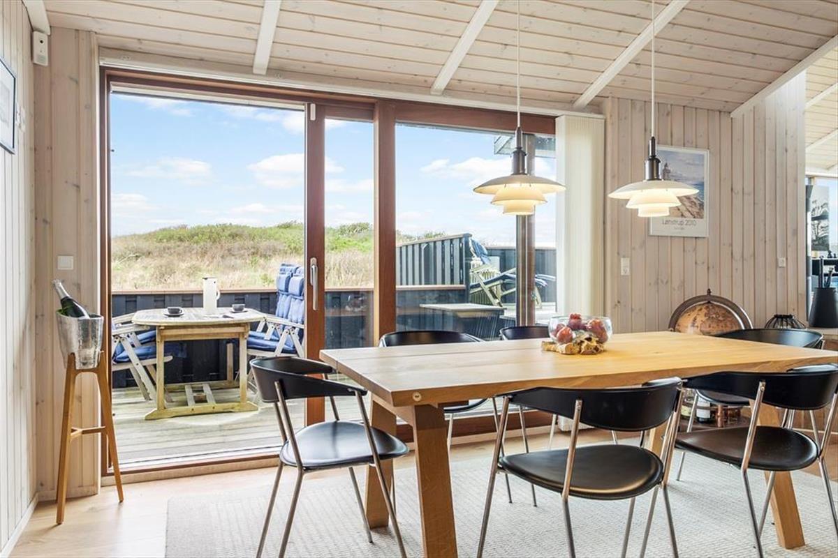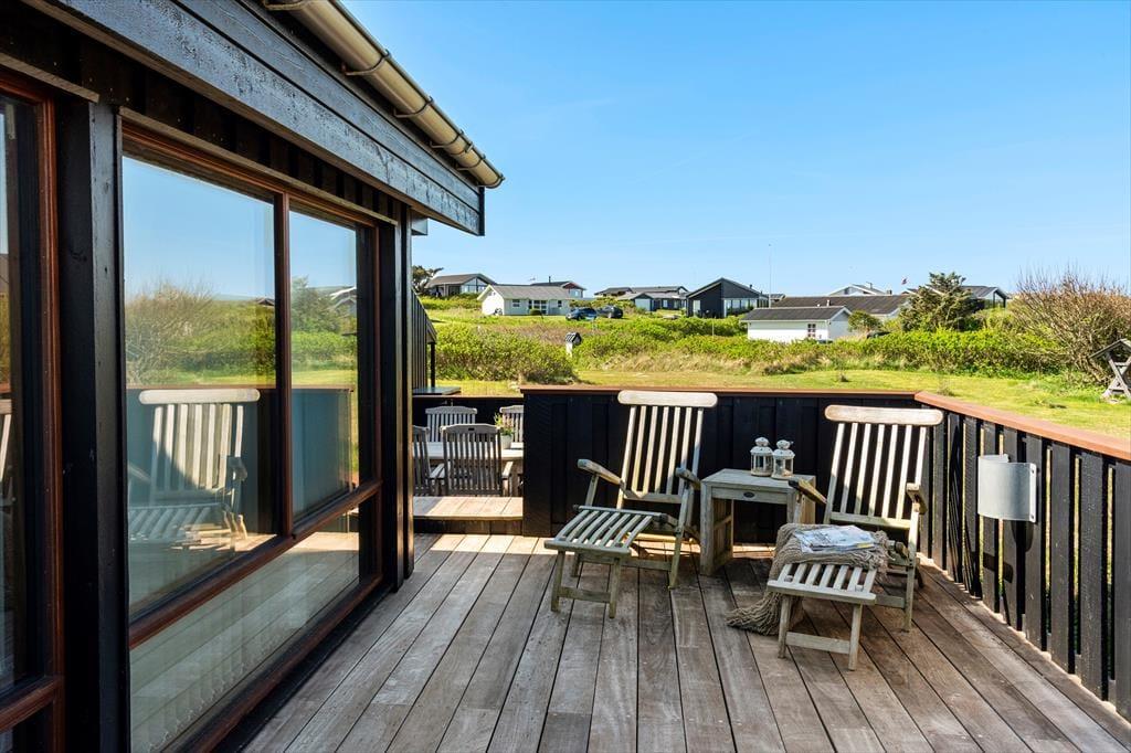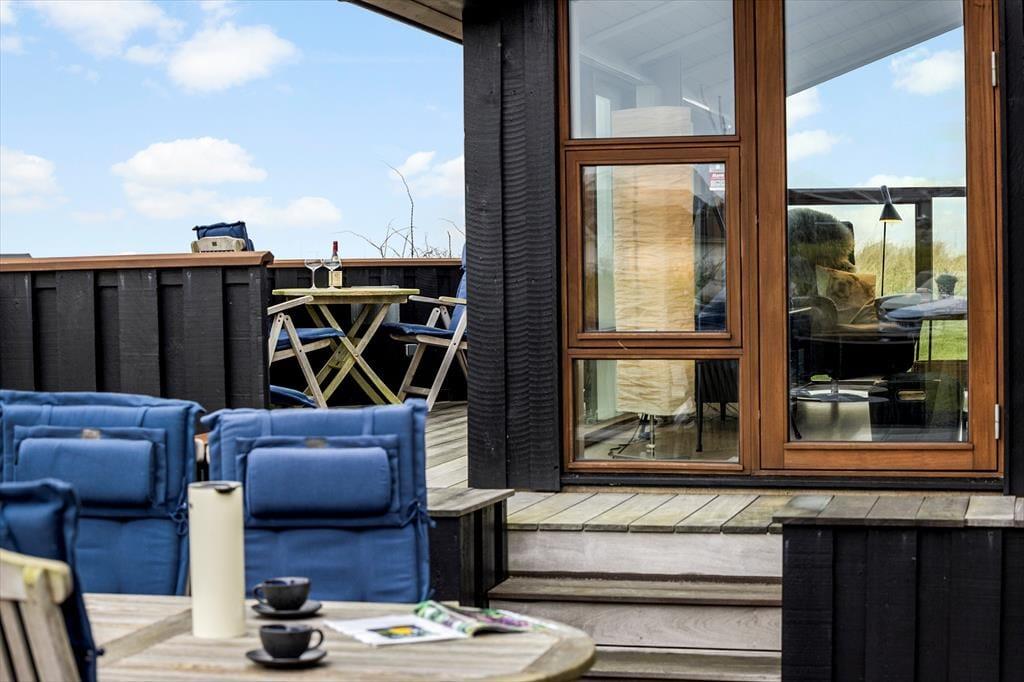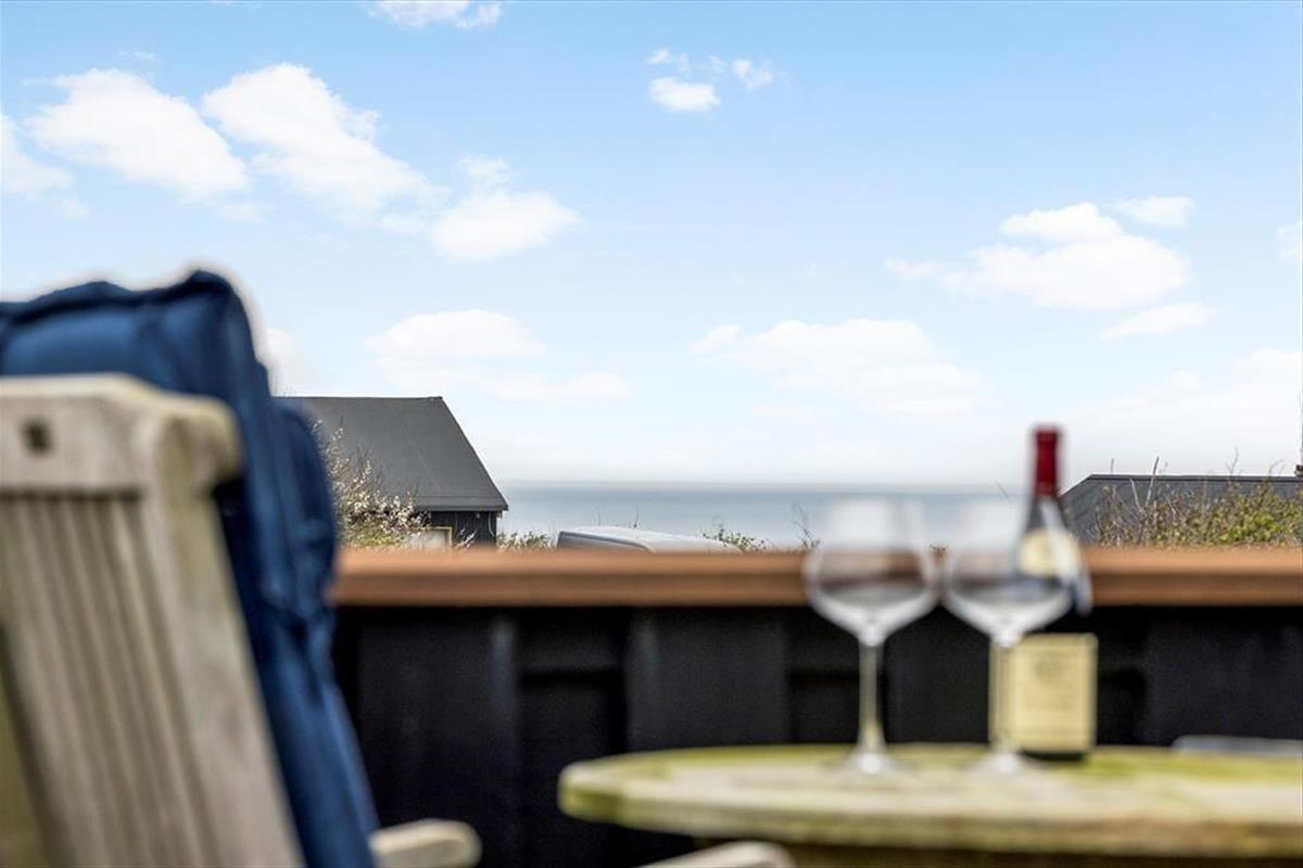 Draußen erwartet Sie ein wunderschön angelegter Terrassenbereich, der sich wie eine natürliche Verlängerung des Hauses anfühlt. Mehrere Terrassen auf unterschiedlichen Ebenen ermöglichen es Ihnen, den perfekten Platz zu finden – je nachdem, ob Sie die Morgensonne oder die goldene Abendsonne bevorzugen. Der Ausblick ist dabei kaum zu übertreffen: Von der erhöhten Lage aus genießen Sie einen weiten Blick über die Dünenlandschaft und das tiefblaue Meer, das sich je nach Wetter und Licht ständig verändert. Die Terrassen laden zu entspannten Ferientagen mit einem guten Buch, Grillabenden und anregenden Gesprächen ein. An ruhigen Tagen hören Sie die Vögel in den Dünen und spüren die sanfte Brise auf der Haut – Urlaubsmomente, die lange in Erinnerung bleiben.