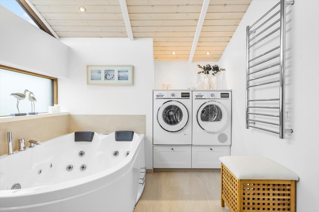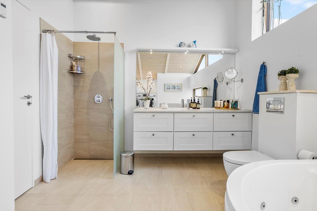 Die Klitbakkevej liegt in einem der ruhigeren Ecken von Lønstrup – und dennoch erreichen Sie sowohl Strand als auch Ortskern in wenigen Minuten zu Fuß. Nur ein kurzer Spaziergang bringt Sie zur Küste, wo Sie die unberechenbare Schönheit der Nordsee hautnah erleben können. Hohe Klippen, breite Strände und fantastische Spazierwege warten hier auf Sie. Das charmante Ferienörtchen Lønstrup bietet alles, was das Urlauberherz begehrt – von Eisdielen und gemütlichen Cafés bis hin zu renommierten Restaurants wie dem Michelin-Restaurant Villa Vest. Auch Kunstinteressierte kommen auf ihre Kosten: In den kleinen Galerien und Werkstätten begegnen Sie leidenschaftlichen Kunsthandwerkern. Und wer sich nach Entspannung sehnt, kann das nahegelegene Skallerup Seaside Resort mit dem bekannten Wellnessbereich „Romulus“ besuchen. Ob Natur, Kultur oder pure Erholung – in dieser einzigartigen Region finden Sie alles, was den perfekten Urlaub ausmacht.