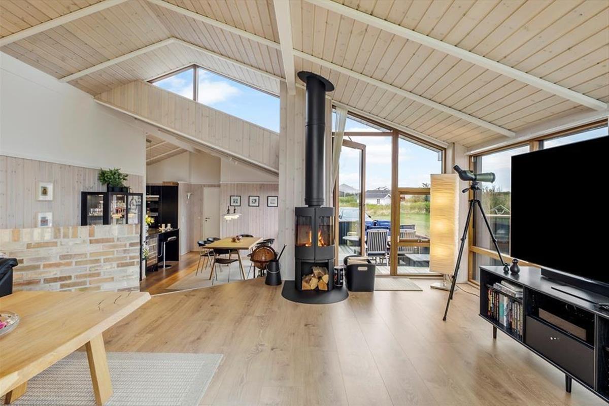 Im Inneren erwartet Sie eine Atmosphäre, die zugleich modern und entspannt ist. Die durchdachte Einrichtung und die stilvolle Materialwahl schaffen ein ruhiges, lichtdurchflutetes Ambiente, in dem man sich sofort wohlfühlt – zu jeder Jahreszeit. Das Herzstück des Hauses ist der großzügige Wohnbereich mit einer eleganten, offenen Küche. Hier ist ausreichend Platz für gemeinsame Momente – sei es ein verregneter Nachmittag mit Gesellschaftsspielen und heißer Schokolade oder ein Sommermorgen mit frischen Brötchen und Blick auf das Meer. Die großen Fensterfronten lassen viel Licht herein und bieten einen fantastischen Ausblick auf die Landschaft. Die bequemen Schlafmöglichkeiten sorgen dafür, dass alle Gäste erholsam schlafen – perfekt für die nächsten Urlaubserlebnisse.