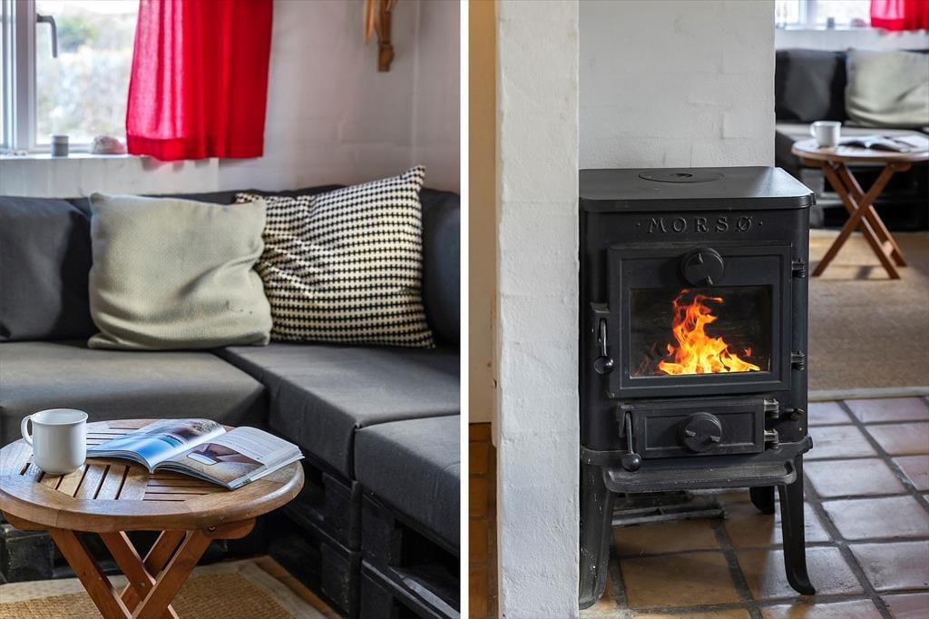 Im Inneren empfängt Sie das Ferienhaus mit einer rustikalen und gemütlichen Einrichtung, in der Holz und warme Farben eine entspannte Atmosphäre schaffen. Der Wohnbereich verfügt über einen Kamin, der an kühlen Tagen Wärme und echte Urlaubsstimmung verbreitet. Gleichzeitig sorgt eine moderne Wärmepumpe für ein angenehmes Raumklima zu jeder Jahreszeit. Dank der zwei Etagen können Sie vom Obergeschoss aus den Meerblick genießen, und es fällt schwer, den Blick und die Gedanken nicht über den blauen Horizont der Nordsee wandern zu lassen. Überall spürt man den heimeligen Charme, der zum Zurücklehnen und Genießen des Urlaubs einlädt.