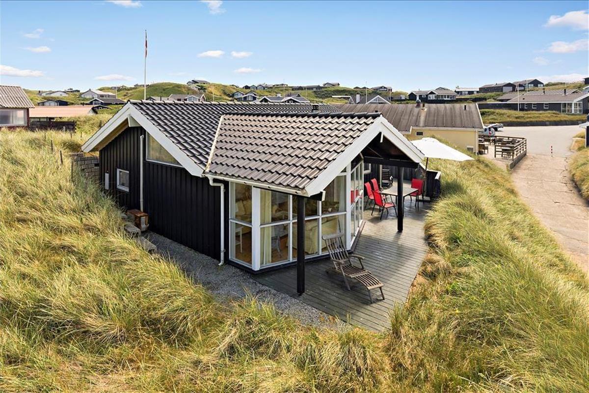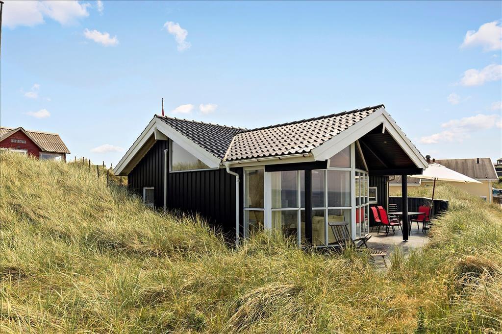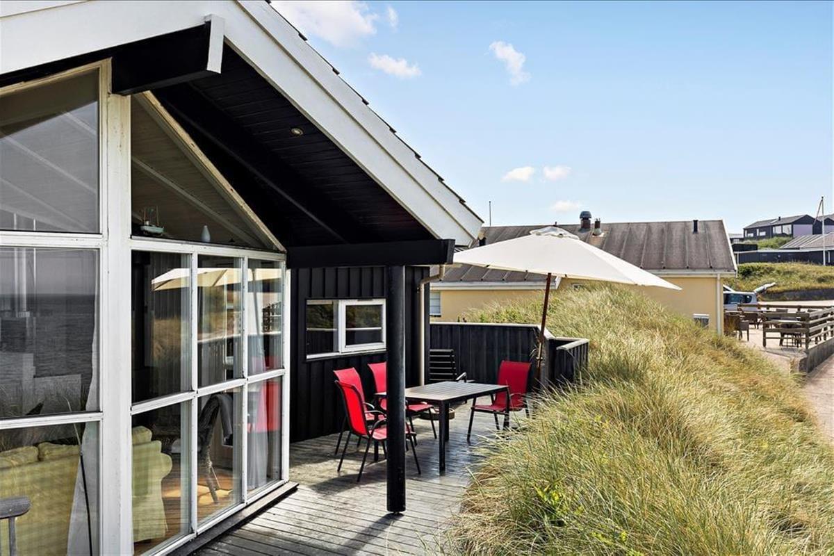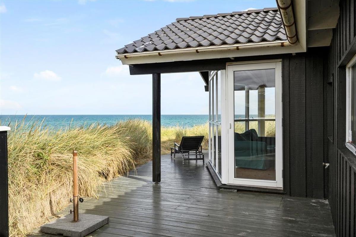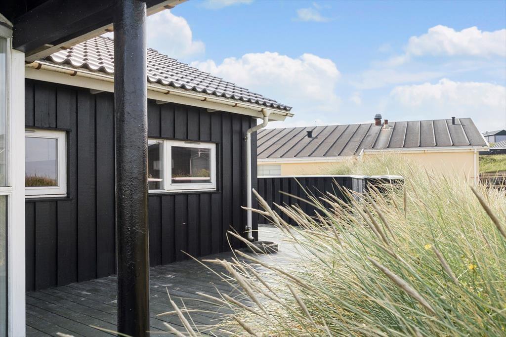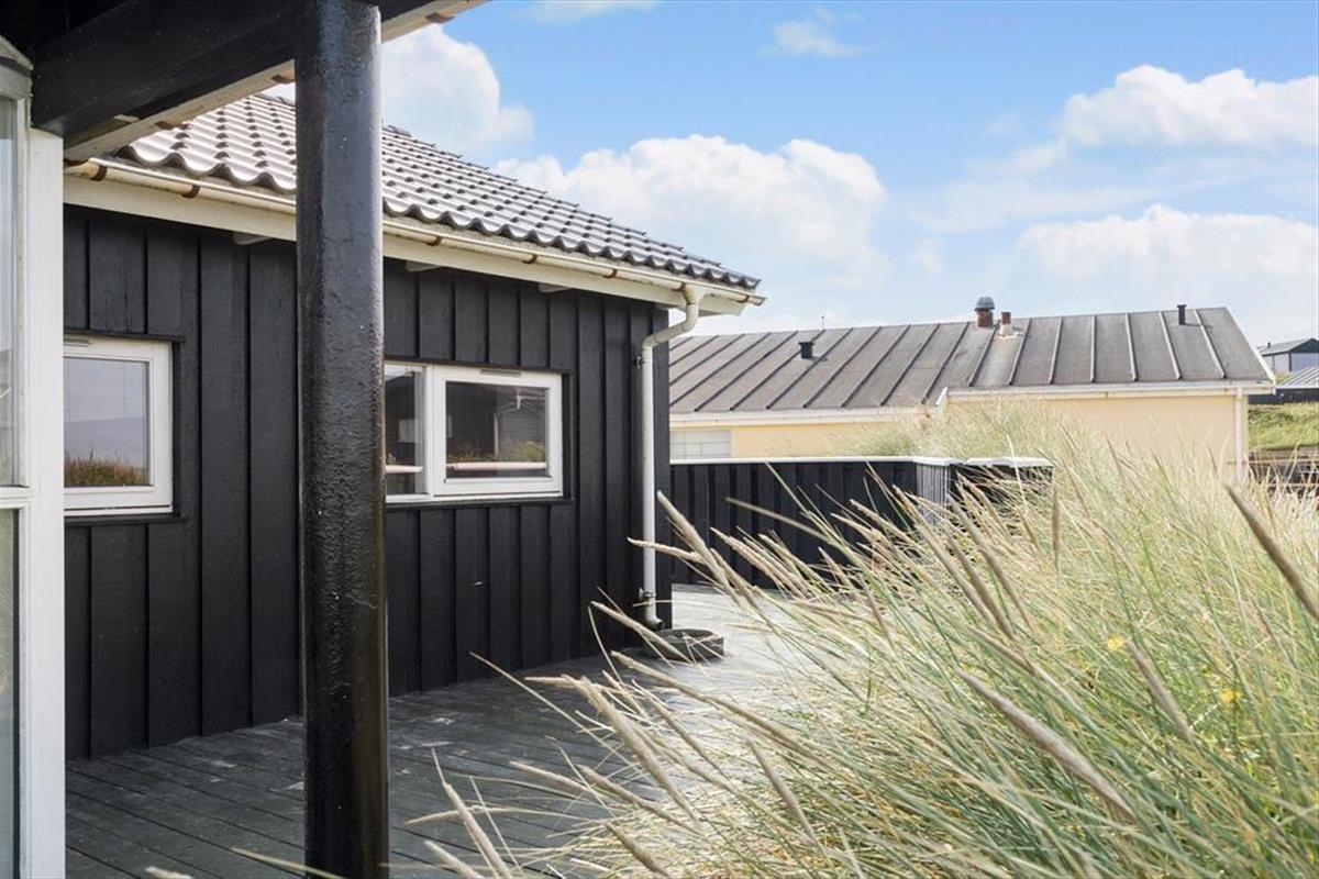 Das Grundstück ist nicht sehr groß, aber dafür ist der Lønstrup Strand gleich vor der Haustür. Eine kleine Terrasse führt rund um das Haus und kann vom Wohnzimmer aus betreten werden. Gartenmöbel, Liegestühle und Grill sind vorhanden. Beim Beobachten des Sonnenuntergangs in der Nordsee lässt es sich an lauen Sommerabenden entspannt verweilen.