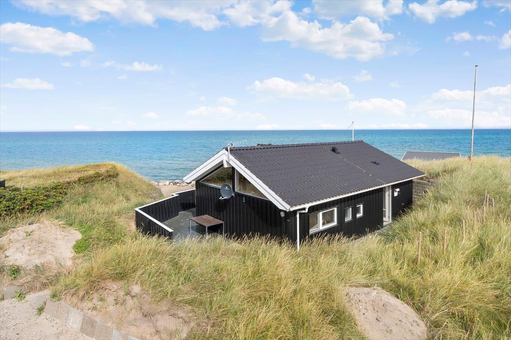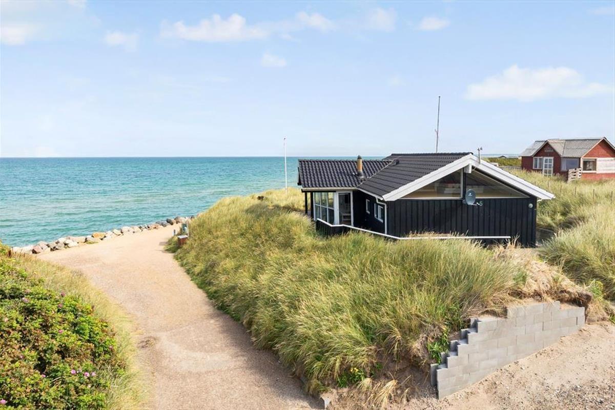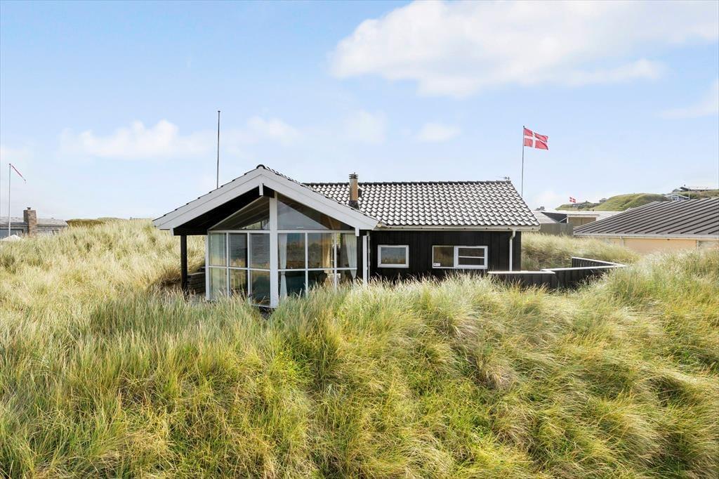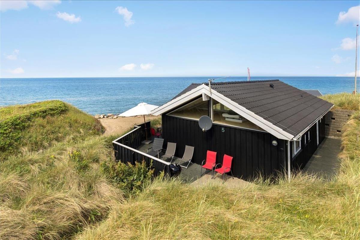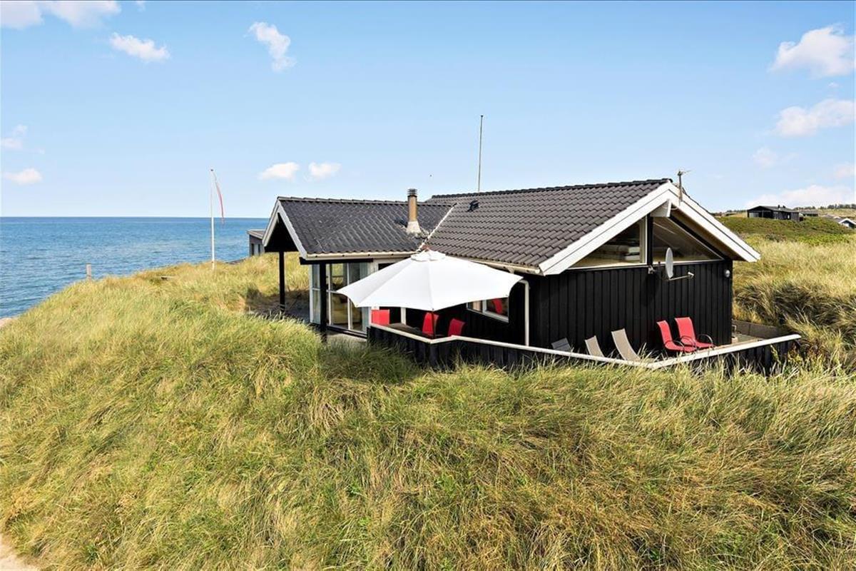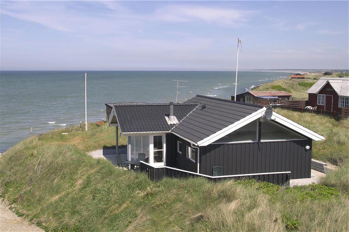 Das Grundstück ist nicht sehr groß, aber dafür ist der Lønstrup Strand gleich vor der Haustür. Eine kleine Terrasse führt rund um das Haus und kann vom Wohnzimmer aus betreten werden. Gartenmöbel, Liegestühle und Grill sind vorhanden. Beim Beobachten des Sonnenuntergangs in der Nordsee lässt es sich an lauen Sommerabenden entspannt verweilen.