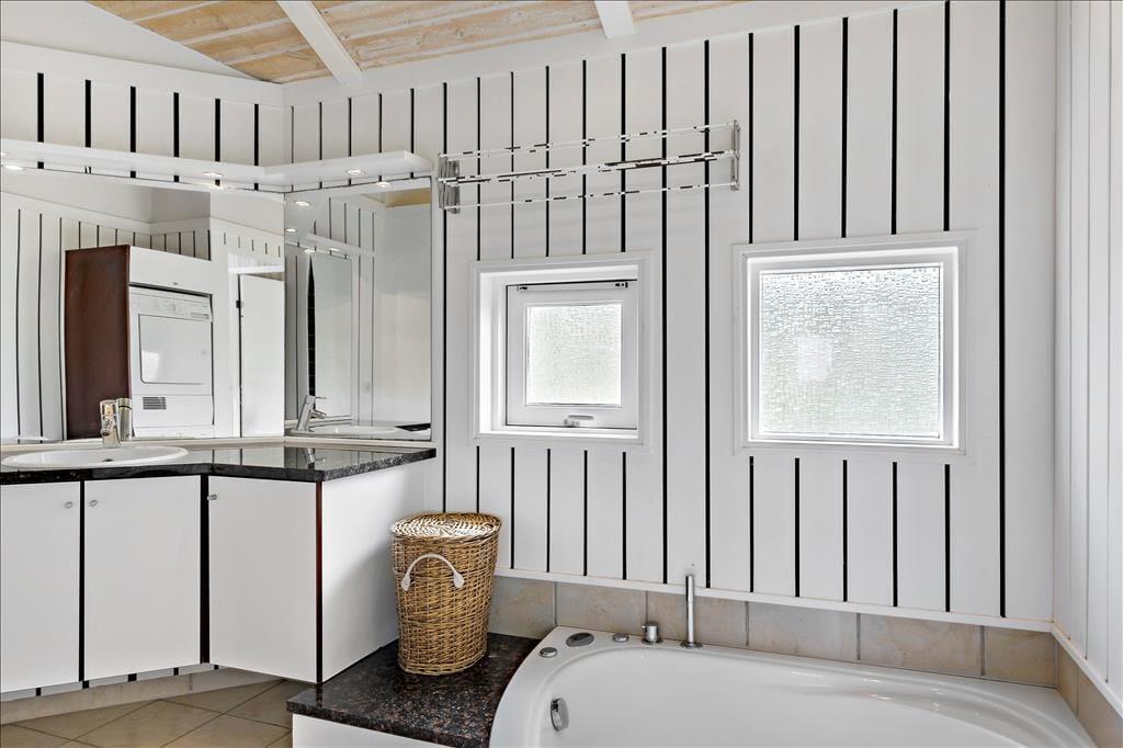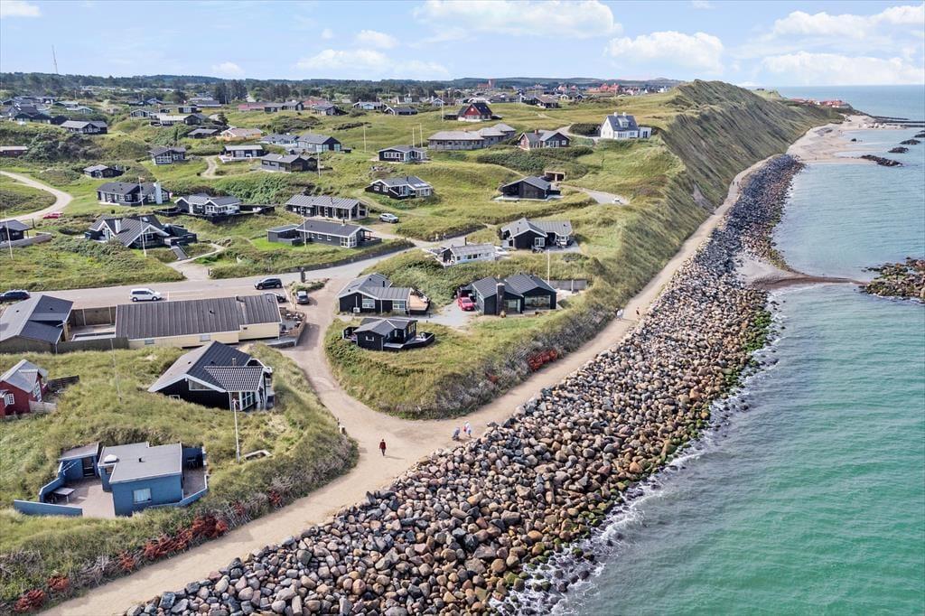 Das Haus steht im begehrten Gebiet Harrerenden in Lønstrup. Der Ort ist im Sommer immer gut besucht, wenn Leben, Charme und glückliche Menschen kommen. Hier gibt es kleine Geschäfte, Künstler und deren Werkstätten, verschiedene, schöne Restaurants und vom Haus aus ist es nur ein kleiner Spaziergang bis in den Ortskern. Am Rande des Grundstücks ist die Küste gesichert und morgens, mittags und abends lockt ein Bad in der Nordsee.
