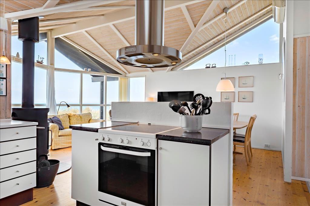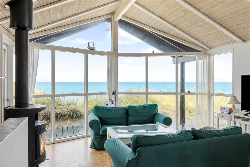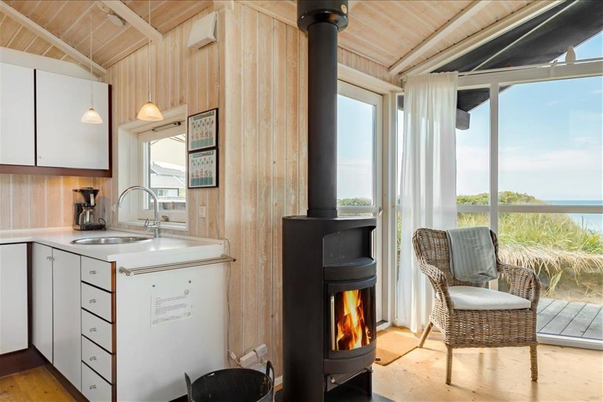 Das Haus ist gemütlich und freundlich durch hohe Decken, viel Licht aufgrund großer Fenster und viele, kleine Details. Es ist Platz für bis zu sechs Gäste. In einem Zimmer steht ein Etagenbett, welches sich besonders für Kinder eignet. Aber auch für Paare ist dies ein schönes Haus. Im Badezimmer sind Dusche und Whirlpool, Waschmaschine und Wäschetrockner vorhanden. Der Wohnbereich setzt sich aus offener Küche, Essbereich und Wohnzimmer, in dem Sie auf dem Sofa sitzen und die beeindrucken Aussicht über die Nordsee genießen können. Mit einem Feuer im Kamin verbreitet sich die Ruhe sofort überall. Zudem gibt es kostenloses WLAN, falls Sie Ihr Tablet oder den Laptop mitbringen wollen. Aufgrund der Lage am Wasser muss das Auto ca. 30 Meter entfernt am Supermarkt, welcher im Sommer geöffnet hat, abgestellt werden.
