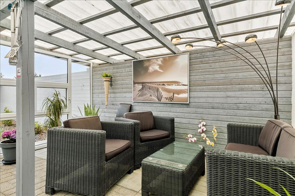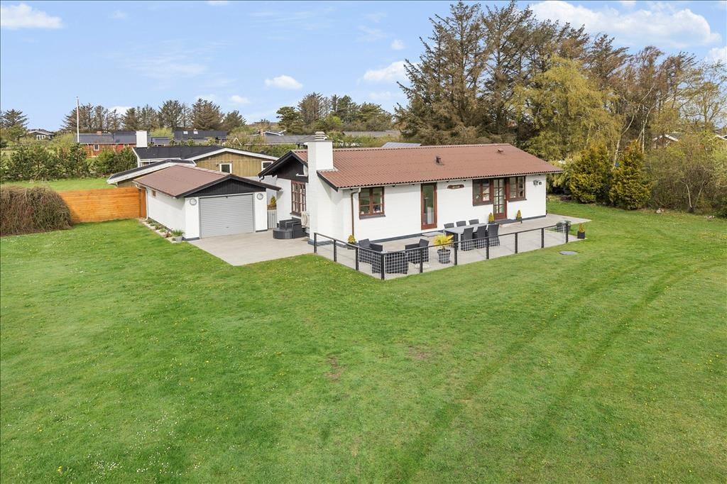 Auf einem großen, grünen Grundstück in Lønstrup liegt dieses schöne Ferienhaus, das Sie willkommen heißt. Die Außenbereiche gehören eindeutig zu den Vorzügen des Hauses, wie beispielsweise die geschlossene Terrasse, die eine wunderbare und ungestörte Oase ist.