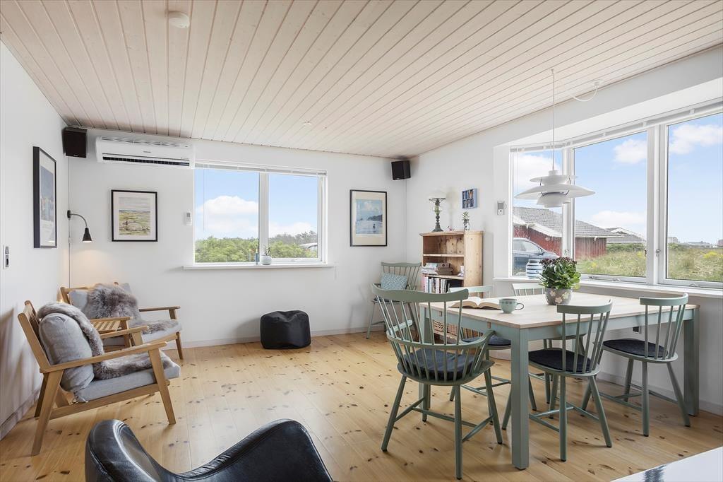 Dieses Ferienhaus liegt hoch in schöner Umgebung und in Nähe zur Küste. Nach einem kurzen Spaziergang erreichst du Lønstrup Klint, die Steilküste, wenn du nicht auf dem Weg bist zum Strand von Harerenden – oder zum Lønstrup Strand mit seinem schönen Seenotrettungshaus und den charakteristischen Buhnen. Lønstrup hat eine charmante Atmosphäre mit kleinen Geschäften, Galerien und Cafés. Etwas weiter nördlich findest du das Skallerup Seaside Resort, das einen Wasserpark, Wellness und Bowling für die ganze Familie bietet. Wenn du raus in die Natur willst, solltest du dir einen Ausflug zur Rubjerg Knude nicht entgehen lassen, eine der größten Touristenattraktionen von Nordjütland.