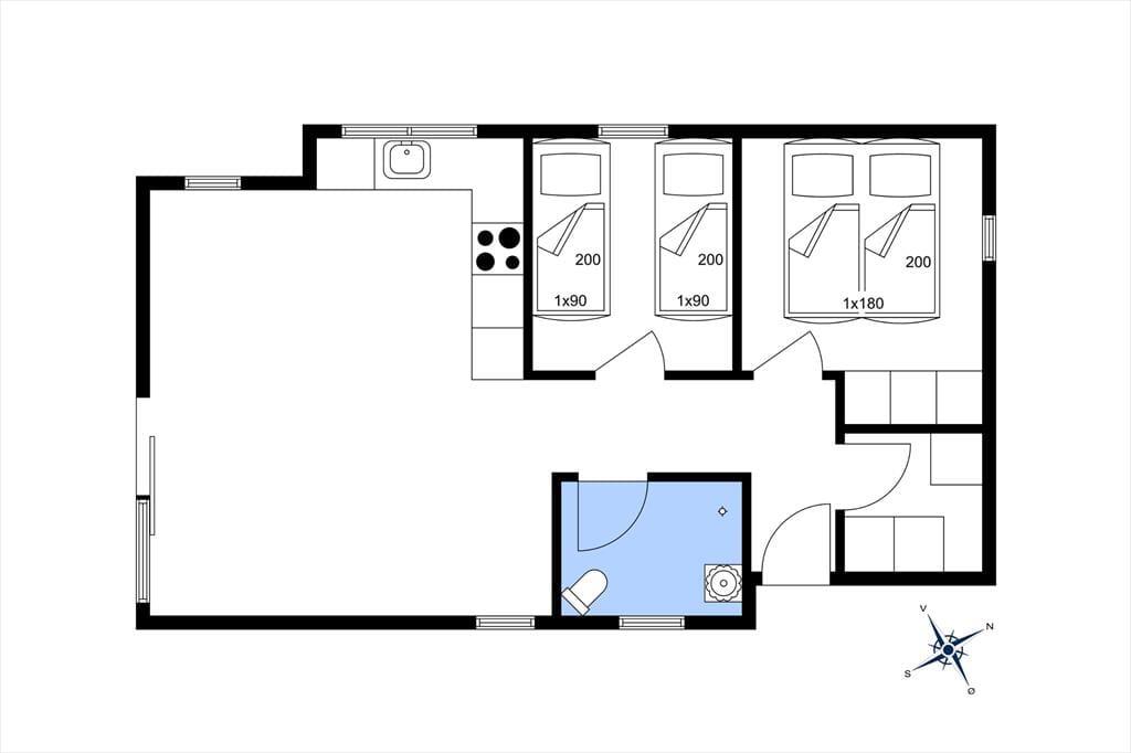 Im Inneren des Hauses betreten Sie zuerst einen Windfang, von dem aus Sie unter anderem direkt in das Badezimmer mit Dusche gelangen. Ihnen stehen ein Schlafraum mit einem Doppelbett und ein Schlafraum mit zwei Einzelbetten zur Verfügung. In einem kleineren Raum stehen außerdem eine Waschmaschine und ein Wäschetrockner für Sie bereit. Die besonders gut ausgestattete, helle Küche bildet eine harmonische, offene Einheit mit dem Wohnraum. Die Möblierung des Wohnraums ist sehr geschmackvoll und ansprechend abgestimmt. Das Urlaubsdomizil bildet somit einen gelungenen Rahmen für einen angenehmen Urlaubsaufenthalt. Dank der hohen Decken besticht das Mietobjekt zudem mit einem guten, luftigen Wohnklima.