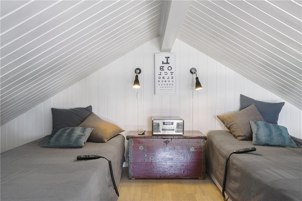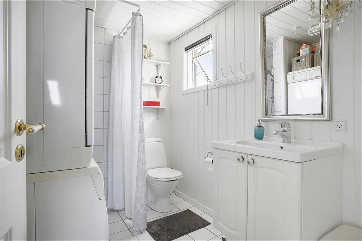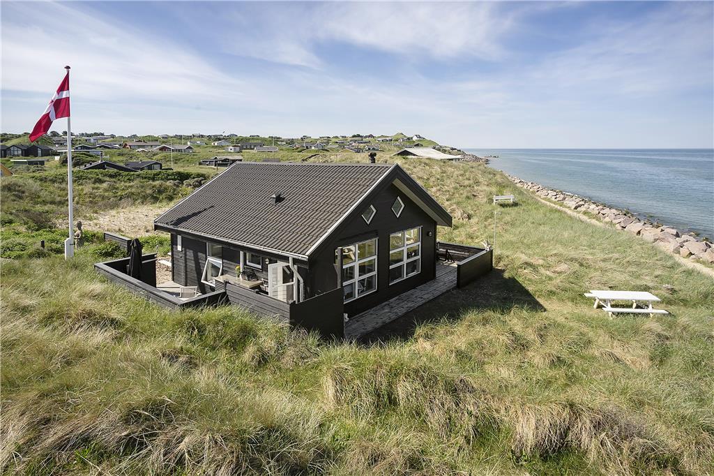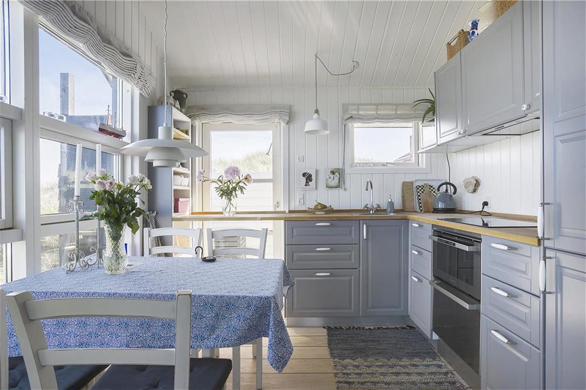Bei diesem Ferienhaus sind die Küche und der Wohnraum harmonisch miteinander kombiniert. Der Raum besticht aufgrund der großen Panoramafenster mit einem herrlichen Lichteinfall und mit der wohl denkbar schönsten Aussicht. Der helle und moderne Wohnraum sorgt mit seiner Einrichtung für ein entspanntes Wohngefühl im Stil der Westküste. Der Kamin sorgt an kühleren Tage für angenehme Wärme und ein Maximum an echter dänischer Ferienhausgemütlichkeit. Ihnen stehen zwei Schlafräume zur Verfügung, von denen einer mit einem Doppelbett eingerichtet ist. Im zweiten Schlafraum steht ein Einzelbett mit darüberliegendem Hochbett für Sie bereit. Zwei weitere Schlafplätze befinden sich in Form zweier Einzelbetten oben auf dem offenen Schlafboden im Wohnbereich. Das helle Badezimmer ist mit einer Waschmaschine und einem Wäschetrockner ausgestattet.