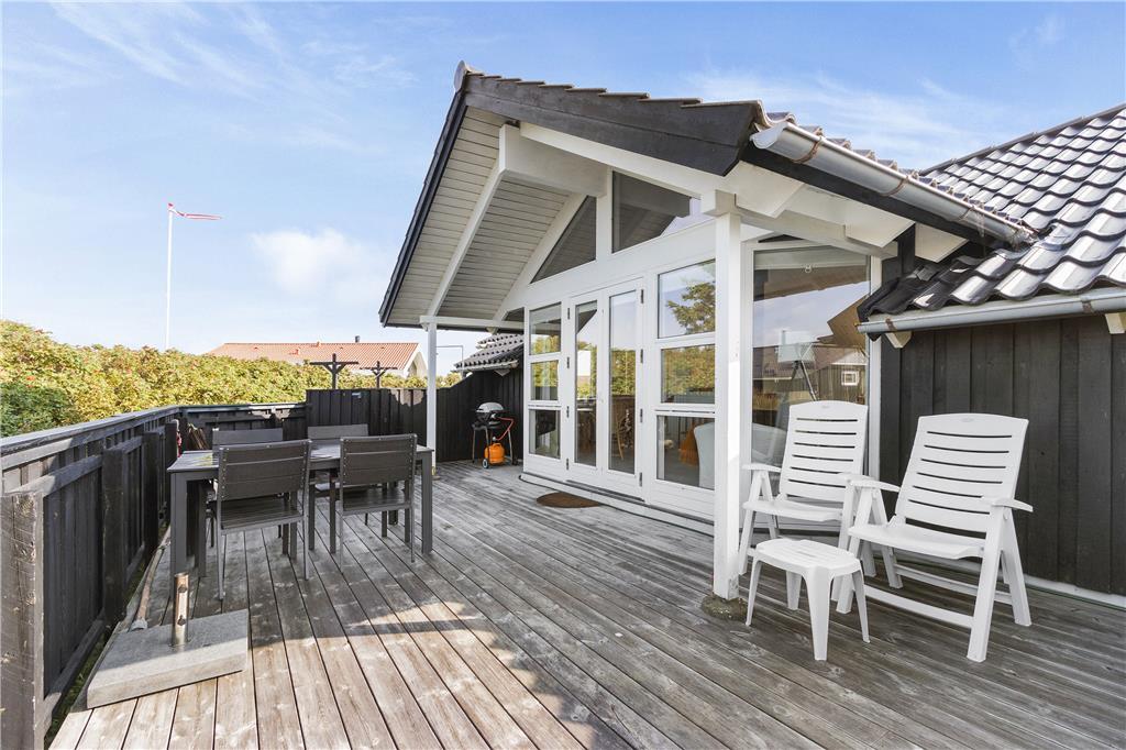 Mehrere Seiten des Hauses sind von teilweise überdachten Terrassen umgeben. Dank der Terrassenumrandungen wird es für Sie ein Leichtes sein, stets ein windgeschütztes und sonniges Plätzchen zu finden. Die größte, vor dem Wohnbereich platzierte Terrasse ist komplett geschlossen. Zum Haus gehört neben den Gartenmöbeln selbstverständlich auch ein Grill, sodass geselligen Sommerabenden mit einem köstlichen Essen unter freiem Himmel nichts im Wege steht.