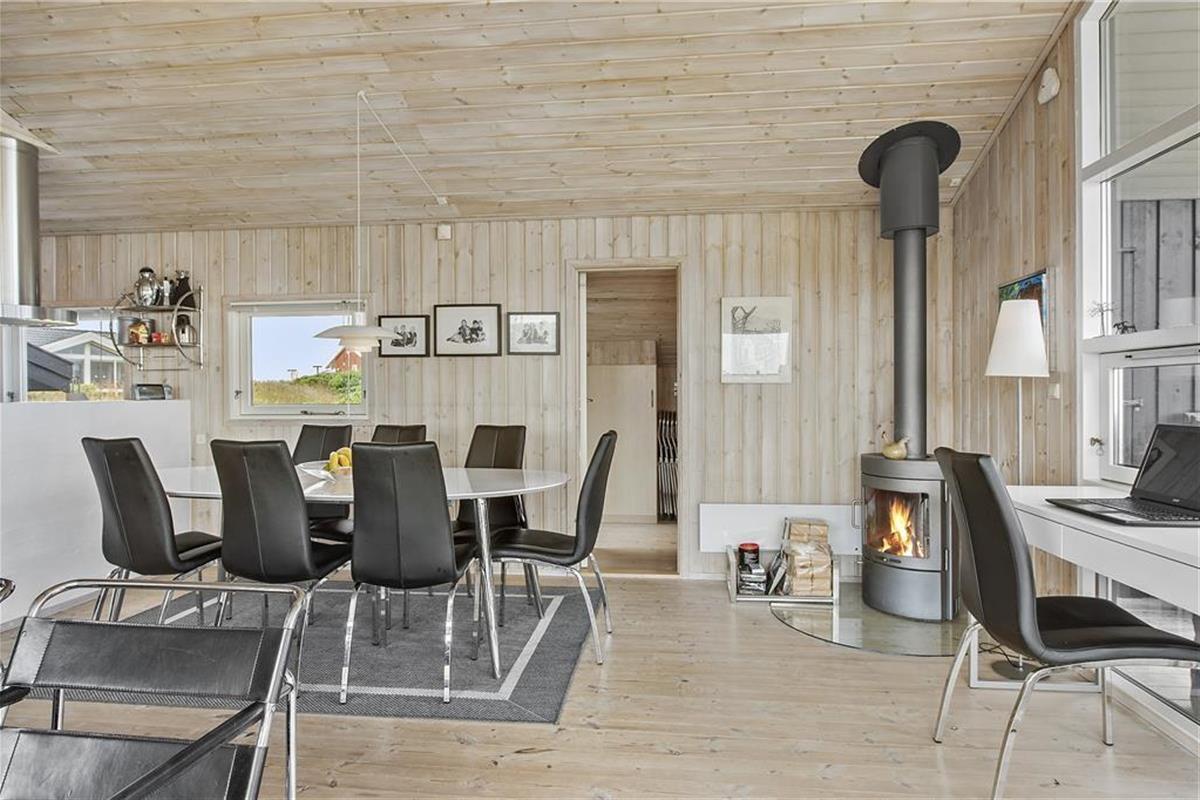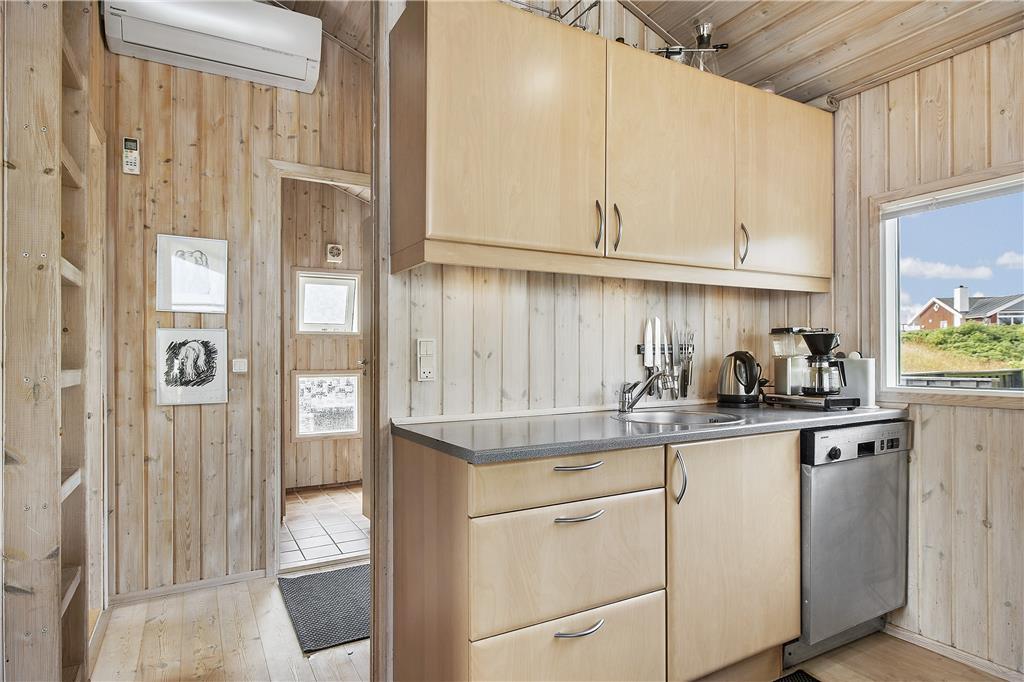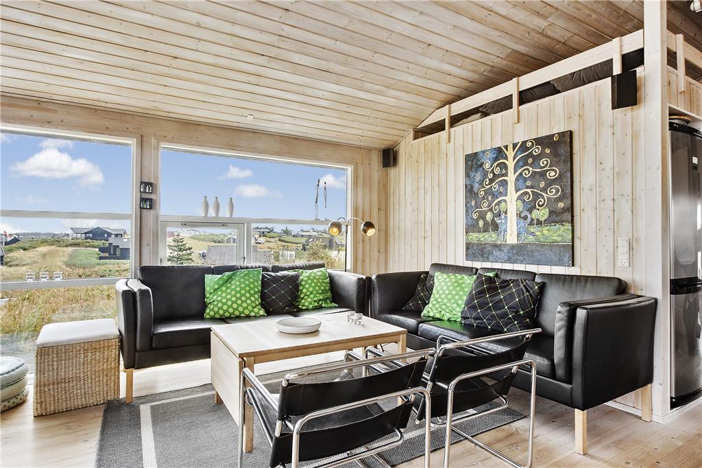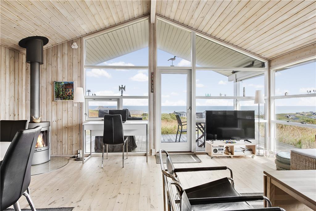 Das Herzstück dieses geschmackvollen Urlaubsdomizils bildet der offene, hell und schön eingerichtete Küchen- und Wohnbereich. In diesem können Sie es sich vor dem Kamin und den großen Fenstern in aller Ruhe gemütlich machen und den ausgesprochen schönen Blick über die Nordsee und die Umgebung genießen. Selbstverständlich lädt dieser Bereich des Hauses auch zu vielen entspannten Stunden im Kreise Ihre Lieben ein, die Sie mit verschiedensten Familienaktivitäten und gemütlichen Fernsehabenden verbringen können. Ihnen stehen insgesamt drei unterschiedlich große Schlafräume zur Verfügung, in denen jeweils ein Doppelbett bereit steht. Hinzu gesellt sich das große, helle Badezimmer mit einer Waschmaschine und einem Wäschetrockner. Dieses Mietobjekt bildet einen sehr guten Rahmen für einen gelungenen Urlaub in Lønstrup!