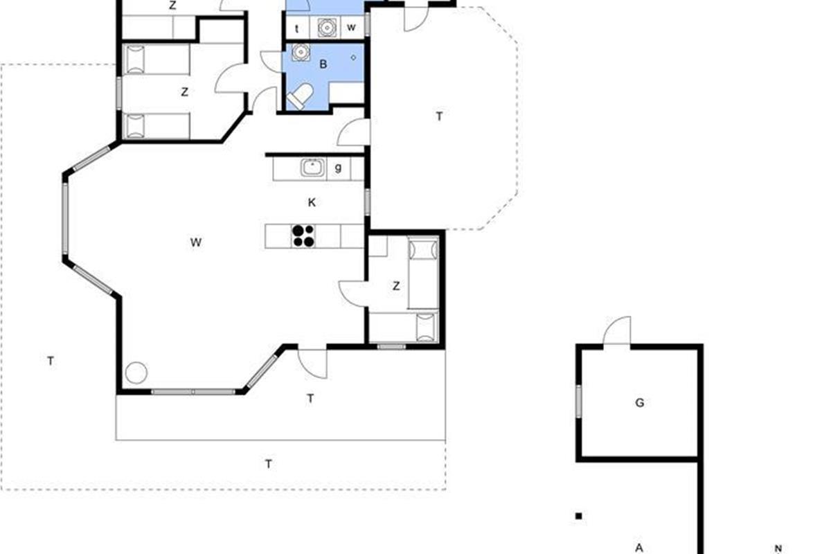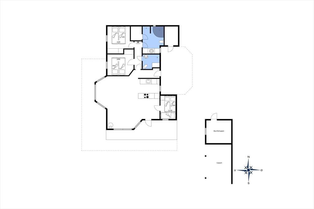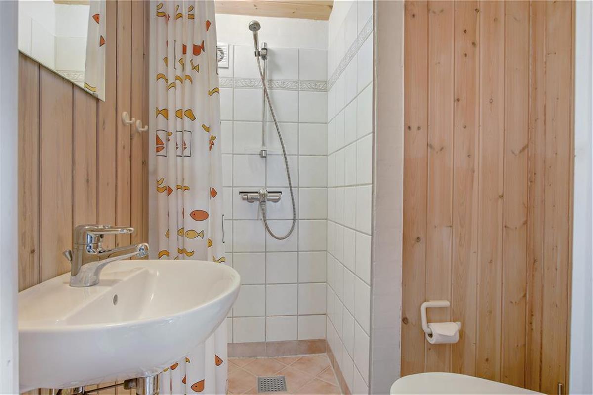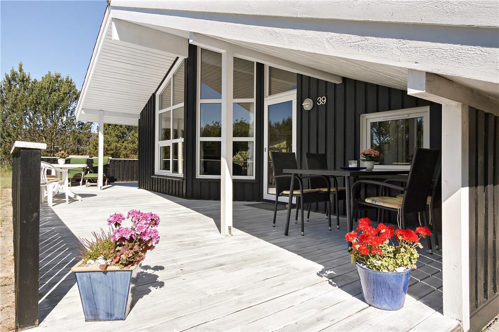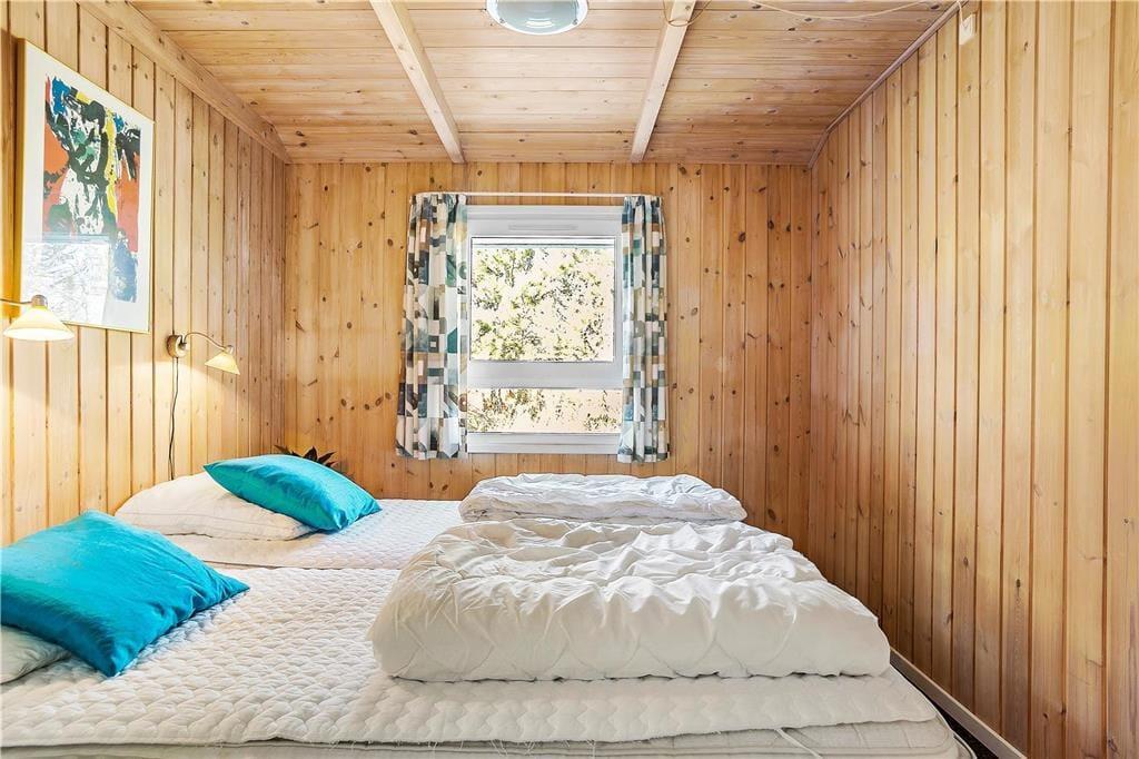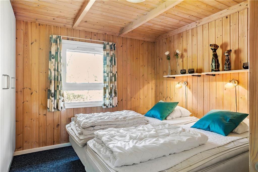Der gesamte Innenbereich besticht mit seiner guten Möblierung und der geschmackvoll aufeinander abgestimmten Farbwahl. Die offene Küche schließt direkt an den Ess- und den Wohnbereich. Der Kamin in einer Ecke des Wohnraums sorgt an kühleren Tagen für behagliche Wärme und ein Maximum an typisch dänischer Ferienhausgemütlichkeit. Das Mietobjekt beinhaltet zwei Schlafräume mit jeweils zwei Einzelbetten und einen Schlafraum mit einem Doppelbett. Zwei ansprechende Bäder verhindern unangenehme Warteschlangen am Morgen. Das größere der beiden Bäder sorgt nach einem erlebnisreichen Urlaubstag mit seinem schönen Eckwhirlpool und der Sauna für erholsame Momente voller Entspannung.