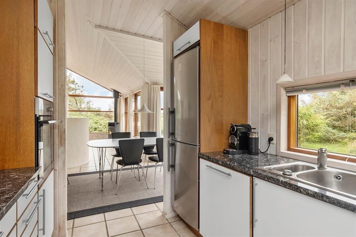 Wenn Sie die Natur lieben, ist dieses Ferienhaus eine gute Wahl. Das Haus liegt auf einem schönen, großen Naturgrundstück, nur eine Gehminute vom Meer entfernt. Wenn Sie auf der Terrasse sitzen, können Sie das Meeresrauschen hören. Auf dem Grundstück gibt es eine reiche Tierwelt, darunter Fasane, Hasen, Eichhörnchen und Rehe. Rund um das Grundstück gibt es Bäume und Sträucher, sodass Sie ungestört die Sonne genießen und in einer der gemütlichen Ecken rund ums Haus essen können. Das Ferienhaus verfügt über große, schöne Holzterrassen, die den größten Teil des Hauses umgeben. So haben Sie viel Platz im Freien, um die Ruhe und die wunderschöne Natur rund um das Haus zu genießen. Vom Grundstück führt ein kleiner Weg direkt zur Nordsee, wo Sie das ganze Jahr über die schönsten Sonnenuntergänge erleben können.