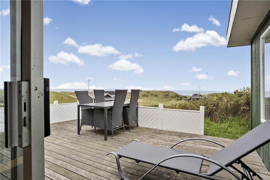 Die sich Ihnen im Hausinneren bietende Aussicht ist außerordentlich schön. Ungleich schöner wirkt die Aussicht jedoch, wenn Sie sich auf der nach Nordwesten ausgerichteten Terrasse niederlassen. Die Terrasse bietet jedoch nicht nur etwas fürs Auge, Sie genießen hier die warmen Sonnenstrahlen, den Duft der im Sommer blühenden Heckenrosen und die leichte Meeresbrise - eventuell begleitet von einem kühlen Getränk oder einem frisch zubereiteten Abendessen vom Grill. An der Südseite des Urlaubsdomizils steht darüber hinaus eine kleine Terrasse zur Verfügung. Das sehr hügelige Dünengrundstück ist ansonsten gänzlich naturbelassen.