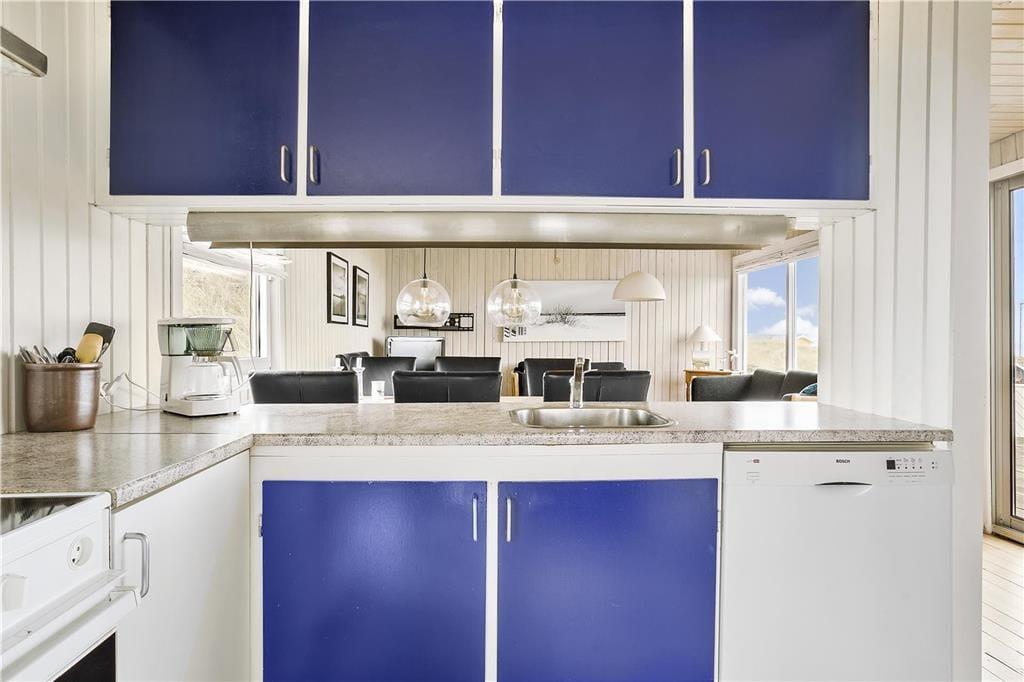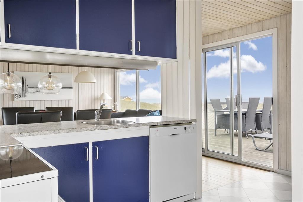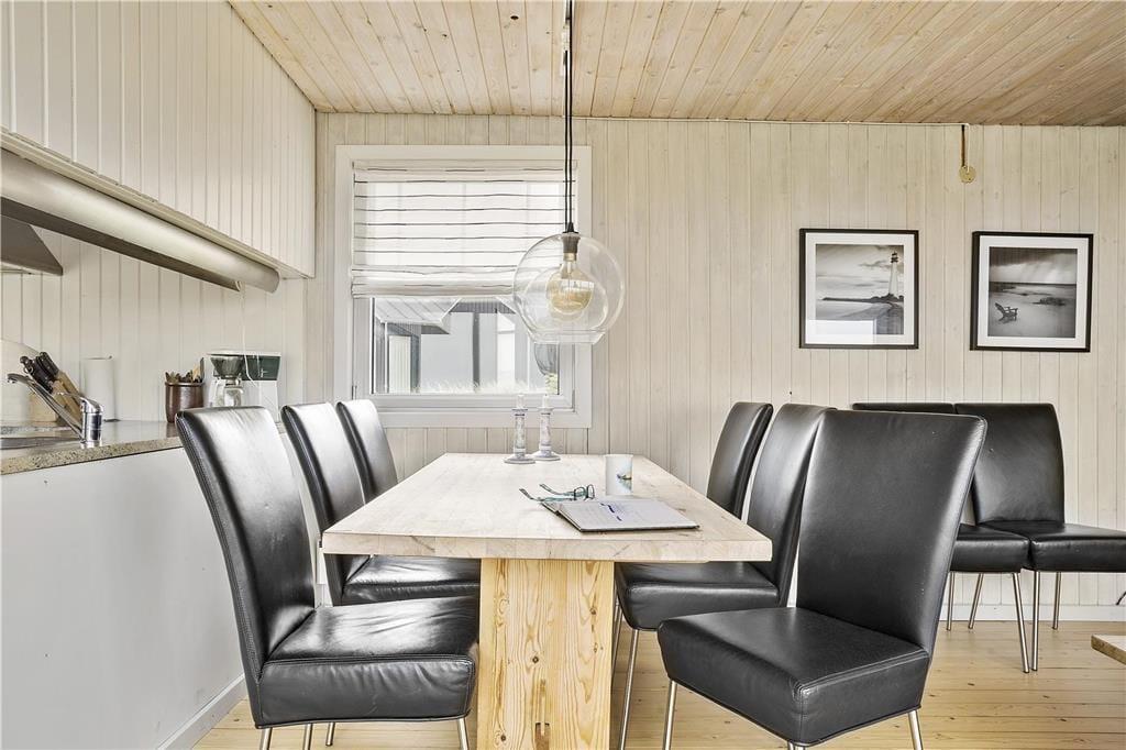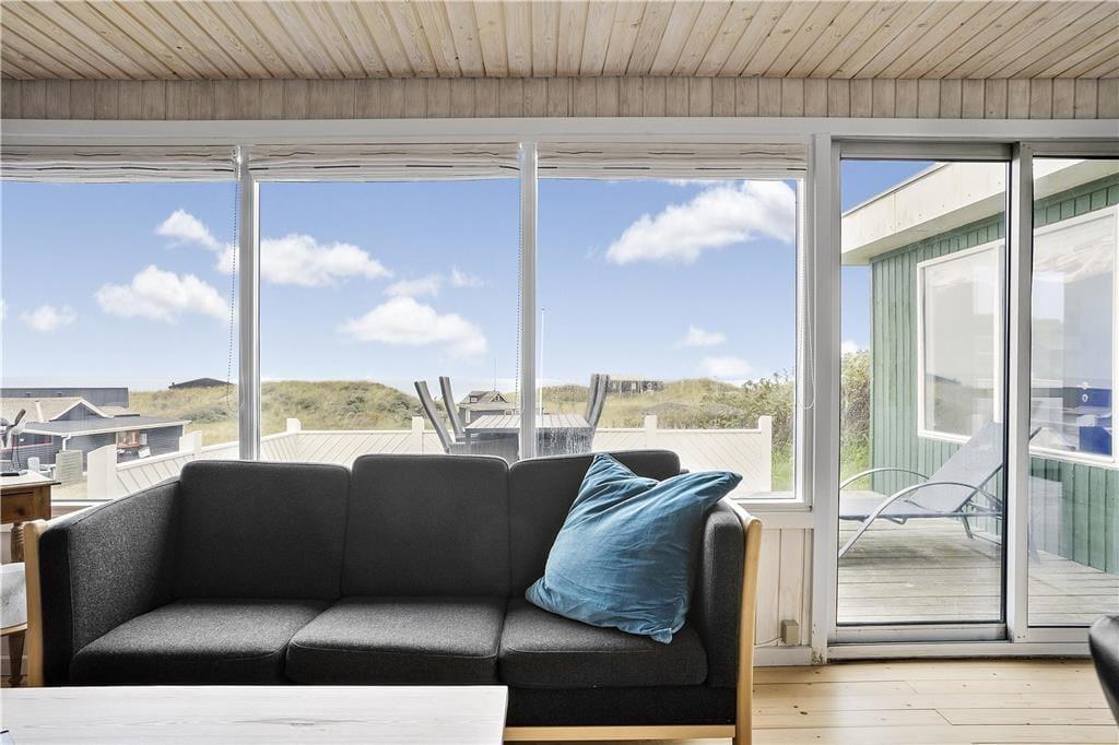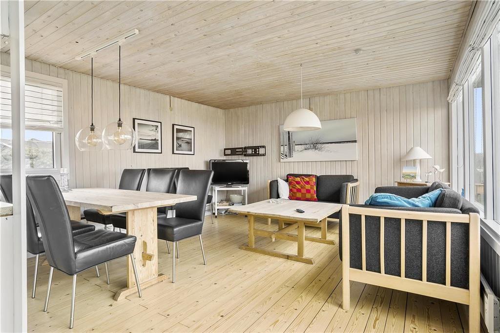 Das Ferienhaus im Hjælmerenden 2 befindet sich nah am Meer. Den gesamten Tag hindurch genießen Sie das Rauschen der Wellen und die frische Seeluft. Nur wenige Meter trennen Sie von einem kilometerlangen Weg, der entlang des Wassers verläuft und zu herrlichen Spaziergängen einlädt. Zwischendurch können Sie auf den am Wegesrand aufgestellten Bänken eine kleine Pause einlegen und den Frieden, die prachtvolle Umgebung und die spektakulären Sonnenuntergänge genießen. Innerhalb von rund einer halben Stunde erreichen Sie zu Fuß den Ortskern Lønstrups. In Lønstrup treffen Sie auf diverse Galerien, Kunsthandwerkstätten und kleine Geschäfte. Mehrere gemütliche Cafés und Restaurants freuen sich darauf, Sie kulinarisch verwöhnen zu dürfen. Ganz gleich, ob Sie gerne angeln, reiten, Fahrrad fahren, surfen oder anderweitig aktiv sind, die Gegend an der Westküste bietet Ihnen zahlreiche Möglichkeiten.