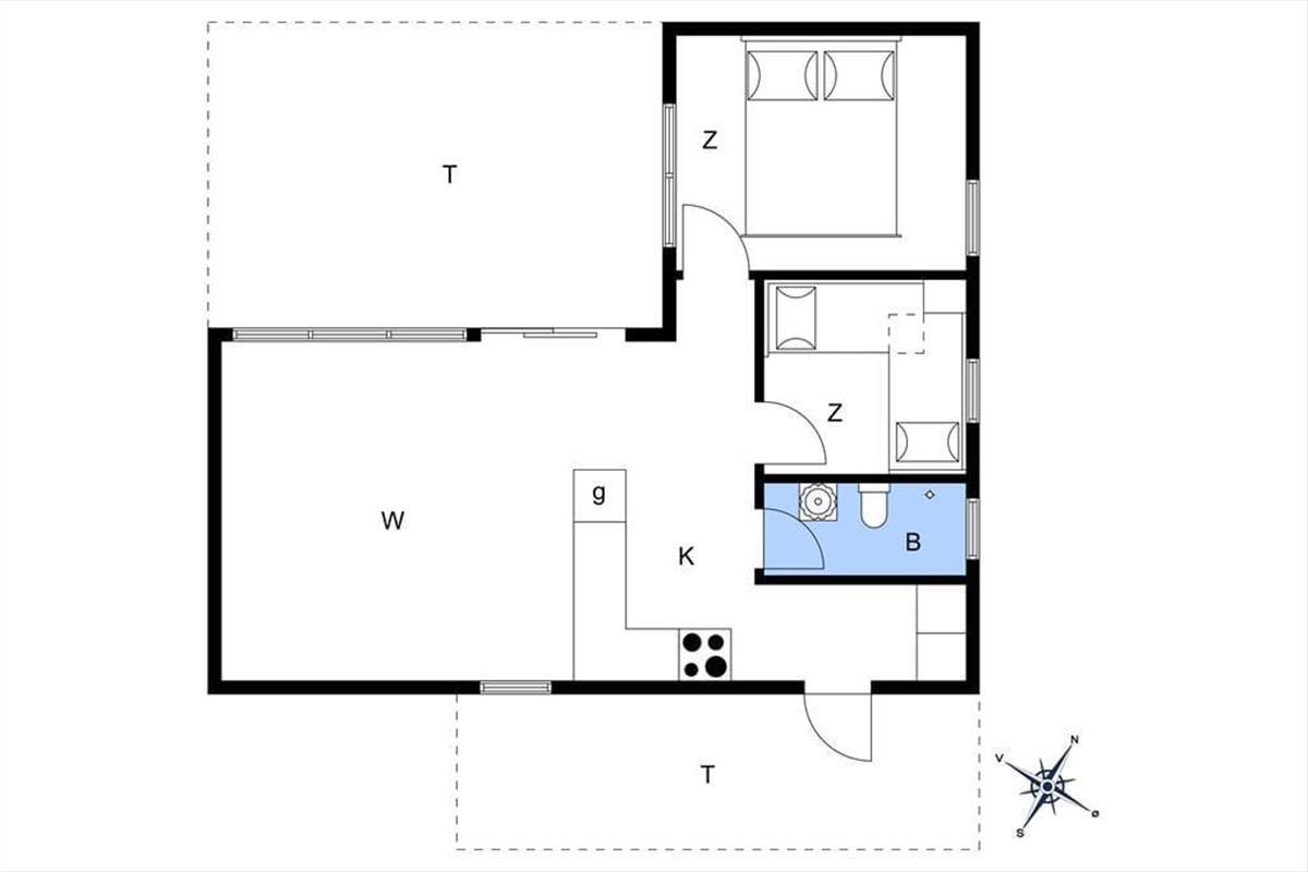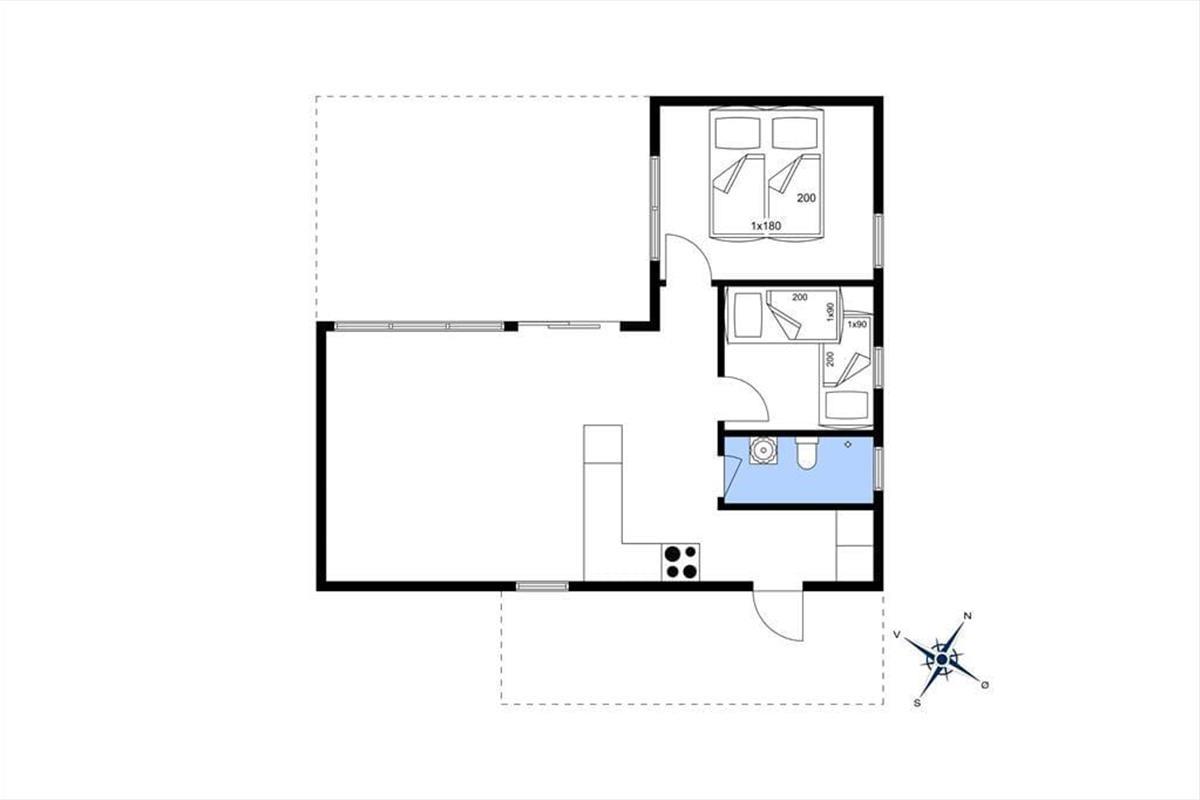 Mit einer wohldurchdacht aufgeteilten, 53 m² umfassenden Wohnfläche beherbergt das Urlaubsdomizil vier Personen. Einer der beiden Schlafräume beinhaltet ein Doppelbett. Im zweiten Schlafraum sind zwei unterschiedlich hohe Kojen untergebracht. Ein Badezimmer mit Dusche steht zu Ihrer Verfügung. Der Rest der Wohnfläche ist dem Aufenthaltsbereich überlassen, der sich offen aus der Küche und dem Wohnraum zusammensetzt. Durch die offene Wohnlösung genießen Sie selbst während der Zubereitung der Mahlzeiten das Beisammensein mit Ihren Lieben und können einfach und schnell den angrenzenden Esstisch decken.