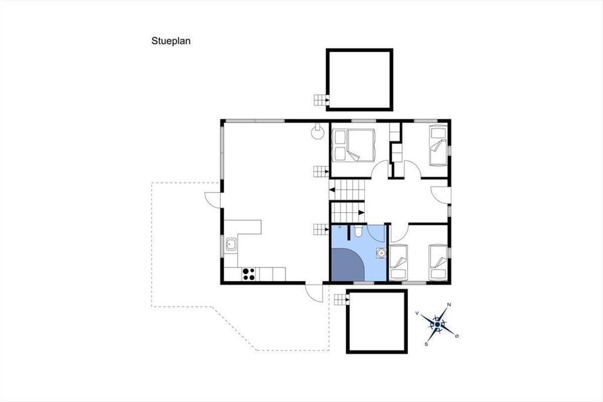Nach dem Betreten des Urlaubsdomizils befinden Sie sich in einem breiten Eingangsbereich, von dem aus Sie in die drei vorhandenen Schlafräume und in das moderne Badezimmer mit Whirlpool gelangen. Schnell werden Sie feststellen, dass der Hauseigentümer sehr viel Wert auf attraktive Details legt. Eine Treppe führt Sie hinab in einem großen Hauswirtschaftsraum mit Waschmaschine und Wäschetrockner. Eine weitere Treppe führt vom Eingangsbereich hinauf in das Herzstück des Hauses, den offen miteinander kombinierten, herrlichen Küchen- und Wohnbereich. Dieser bietet Ihnen viel Platz für das entspannte Beisammensein und sorgt an kühleren Herbsttagen mit seinem Kamin für ein Maximum an Gemütlichkeit und Wärme. Vom Wohnraum gelangen Sie hinauf auf zwei große Hängeböden, die mit einem fantastischen Ausblick begeistern.