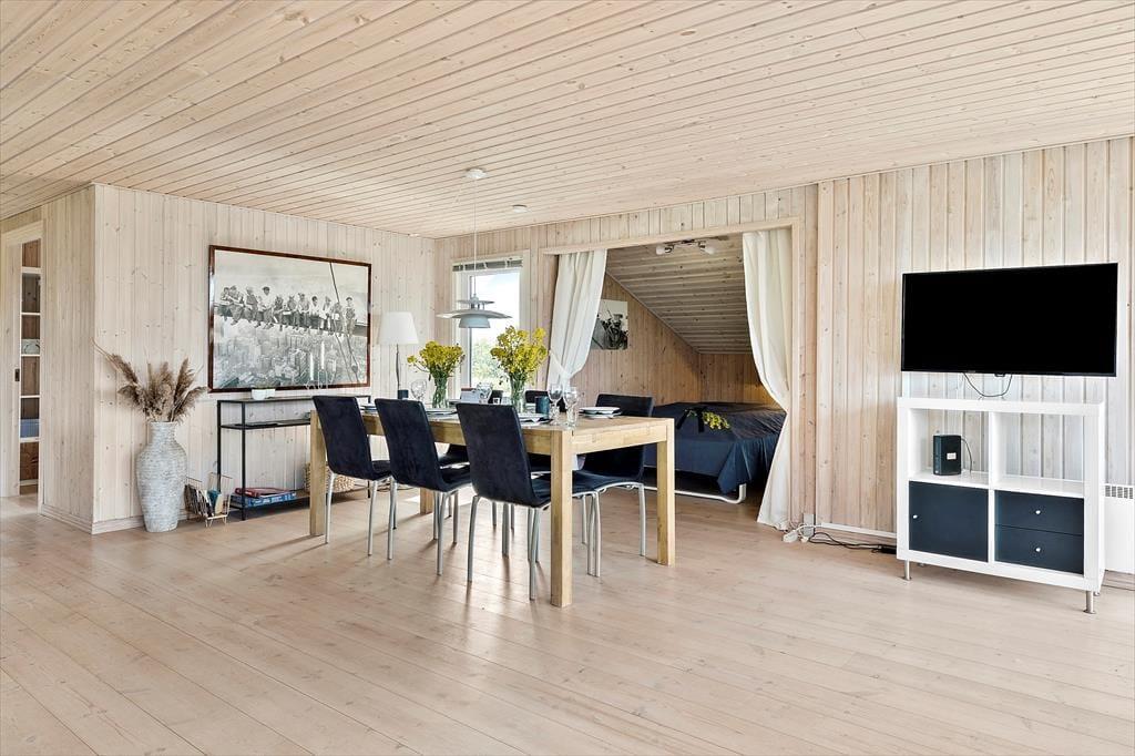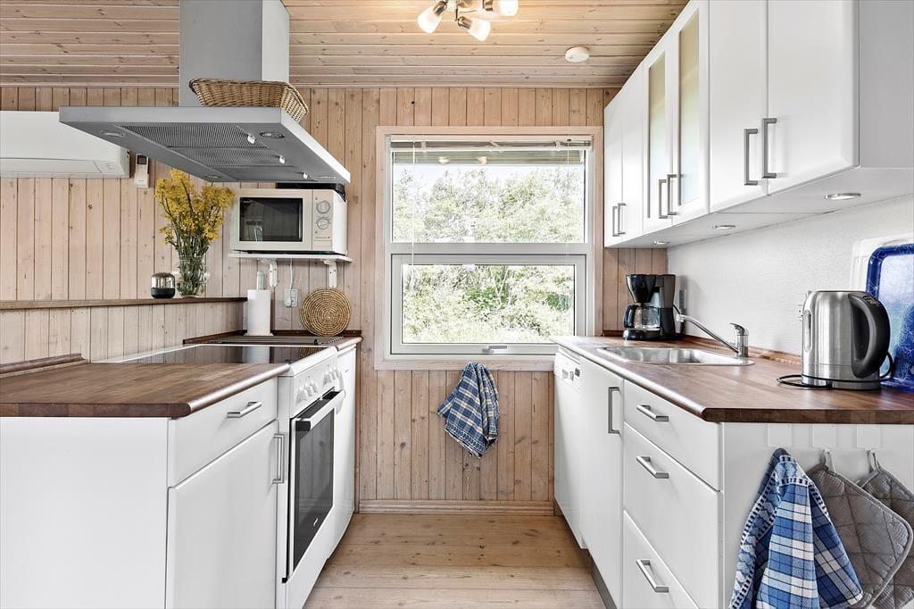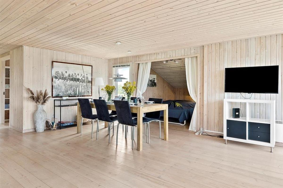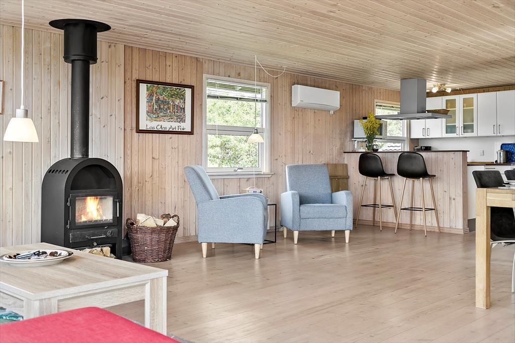 Wenn Sie das Sommerhaus betreten, werden Sie von einer hellen und einladenden Atmosphäre empfangen, die es zu einer Freude macht, hier Zeit zu verbringen. Die großen Fenster sorgen für hervorragendes Licht und öffnen den Blick auf den ruhigen Garten. Die Einrichtung ist hell und charmant, mit einer Mischung aus klassischen und modernen Details, und Sie werden sich schnell wie zu Hause fühlen. Das Wohnzimmer und die Küche sind offen miteinander verbunden, was viel Platz für sowohl gemeinsames Beisammensein als auch Entspannung bietet. Wenn Sie sich auf der Couch niederlassen, können Sie sich leicht vorstellen, wie Sie bei einem guten Buch oder einem Glas Wein gemütliche Momente verbringen, während die Sonne langsam über das Gebiet untergeht.Das Sommerhaus hat eine gute Raumaufteilung, die sowohl für Familien als auch für Gruppen von Freunden geeignet ist, und die beiden Schlafzimmer sorgen für eine erholsame Nachtruhe. Ein zusätzlicher Schlafplatz befindet sich in der gemütlichen Schlafnische im Wohnzimmer, die perfekt für diejenigen ist, die gerne nahe bei der Gemeinschaft bleiben möchten. Die anderen Räume sind einfach und funktional gestaltet, was die entspannende Urlaubsatmosphäre unterstützt.