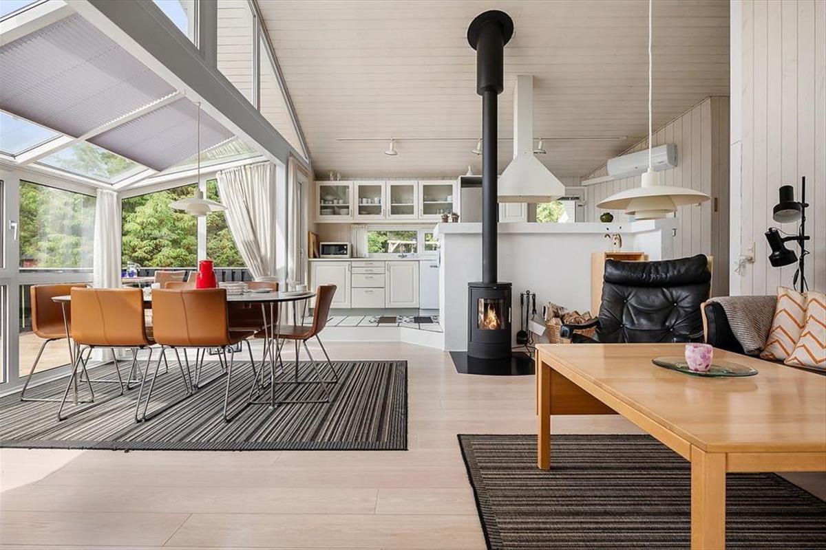 Das Ferienhaus besticht mit seiner ansprechenden, hellen Innengestaltung. Die Einrichtung und die zahlreichen großen Fenster machen den Küchen- und Wohnraum zu einem attraktiven Aufenthaltsbereich, in dem Ihre gesamte Familie viele gemeinsame Stunden verbringen wird. Zum schönen Wohnambiente tragen maßgeblich der Kamin, die gemütliche Polstersitzgruppe und der schöne, im gemütlichen und lichtdurchfluteten Vorbau untergebrachte Esstisch bei. Entspannten Tagen und gemütlichen Abenden im Kreise Ihrer Lieben steht also nichts im Wege. Zwei der vorhandenen guten Schlafräume sind mit jeweils zwei Einzelbetten eingerichtet. Im dritten Schlafraum ist ein Doppelbett untergebracht. Das große Badezimmer lädt mit seinem Whirlpool und der Sauna zu wahren Wellnessmomenten voller Erholung und Entspannung ein. Die Waschmaschine, der Wäschetrockner und der Geschirrspüler erleichtern Ihnen Ihre alltäglichen Aufgaben, sodass Sie sich auf die wesentlichen Dinge des Urlaubs konzentrieren können. Dieses Urlaubsdomizil bildet einen richtig schönen Rahmen für einen durchweg gelungenen Urlaub in Nordjütland!