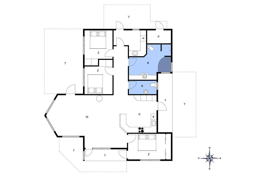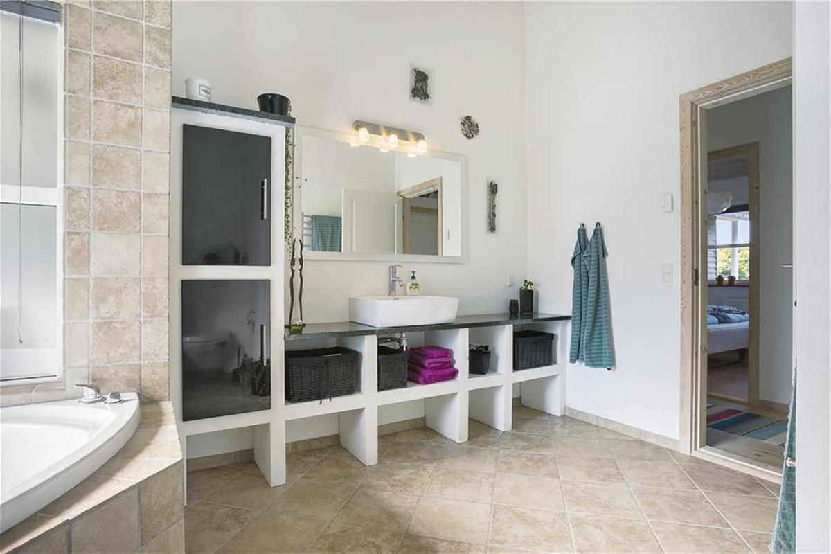 Schon beim Betreten spürt man die helle und freundliche Atmosphäre. Hohe Decken, viel Licht und eine gepflegte, einladende Einrichtung schaffen den perfekten Rahmen für entspannte Urlaubstage. Der offene Wohnbereich verbindet Küche, Essplatz und Wohnzimmer – so kann man leicht zusammen sein, auch wenn jemand kocht und andere Karten spielen oder ein Buch lesen. Der Kaminofen sorgt für wohlige Wärme und eine gemütliche Stimmung nach einem langen Tag am Strand oder auf Ausflügen. Wenn Sie sich etwas Gutes tun möchten, können Sie ein wohltuendes Bad in der Badewanne genießen – ideal, um sich an kühleren Abenden aufzuwärmen oder einfach einen ruhigen Moment zu genießen. Das Haus verfügt über zwei Badezimmer, was besonders praktisch ist, wenn mehrere Gäste zusammen wohnen. Alles ist hell, gepflegt und mit drei schönen Schlafzimmern so aufgeteilt, dass jeder Rückzugsmöglichkeiten und Ruhe findet.