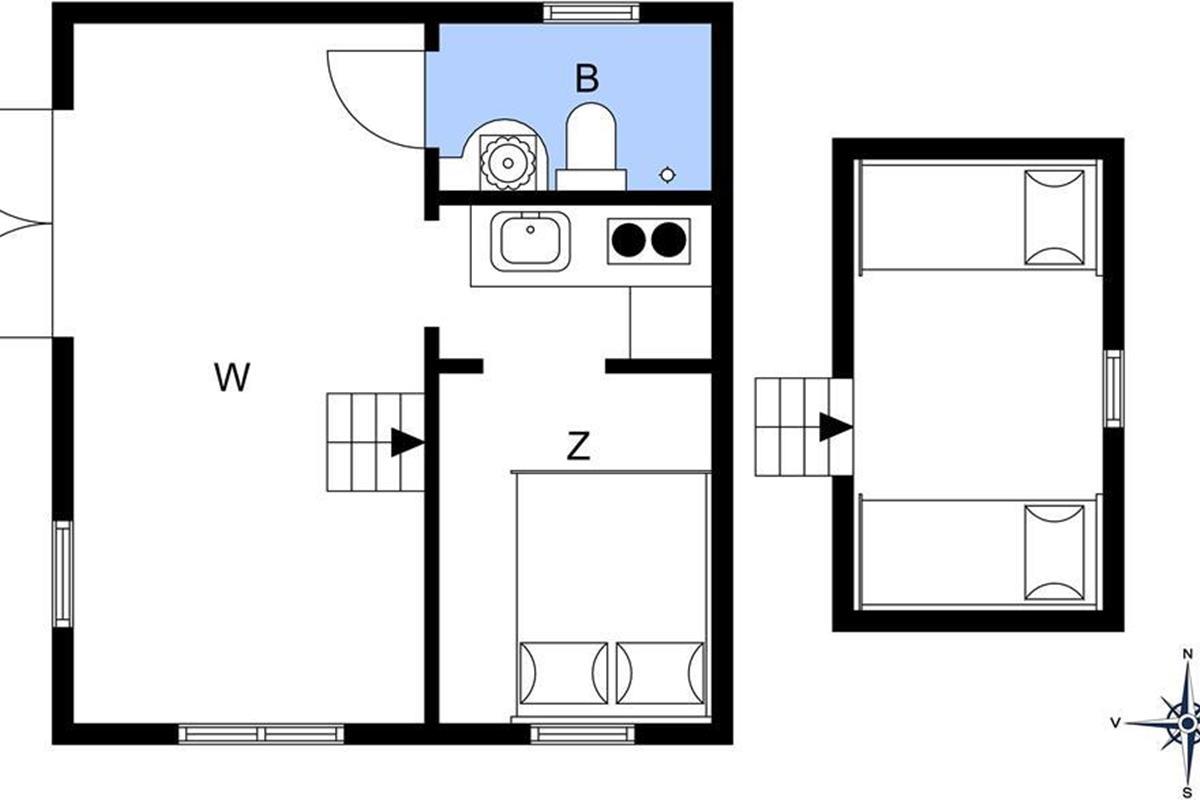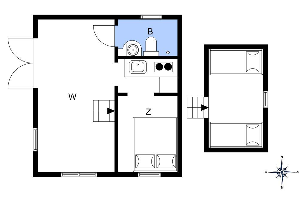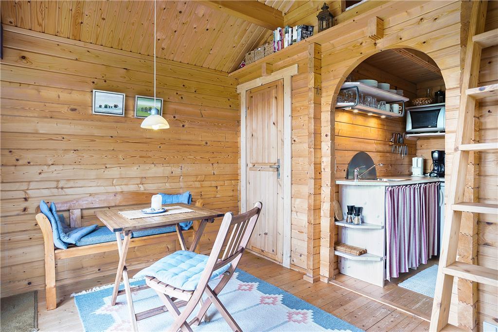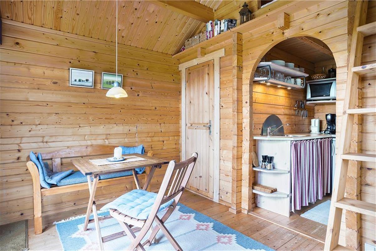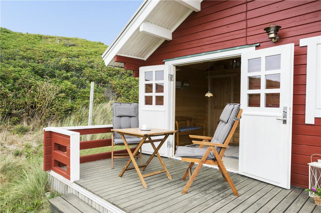 Als erstes wird das Wohnzimmer betreten, das mit einem Sofa und minimalistischen Möbeln im Hinblick auf das kleine Platzangebot eingerichtet ist. Generell kann alles als sehr gemütlich und charmant beschrieben werden. Die kleine, aber funktionale Küche ist direkt mit dem Wohnzimmer verbunden, sodass während des Kochens das Geschehen im Wohnzimmer und auf der Terrasse beobachtet werden kann. Auf dem Dachboden befinden sich zwei Matratzen und von hier überblicken Sie das Wohnzimmer, Terrasse und die wundervolle Dünenlandschaft, die das Haus umgeben. Das Schlafzimmer im Erdgeschoss ist ausgestattet mit einem Schlafsofa für zwei Personen. Auch das Sofa im Wohnzimmer kann als Schlafplatz genutzt werden, falls der Schlafboden Ihnen nicht gefallen sollte. Es ist ein kleines Badezimmer mit Dusche im Ferienhaus vorhanden.